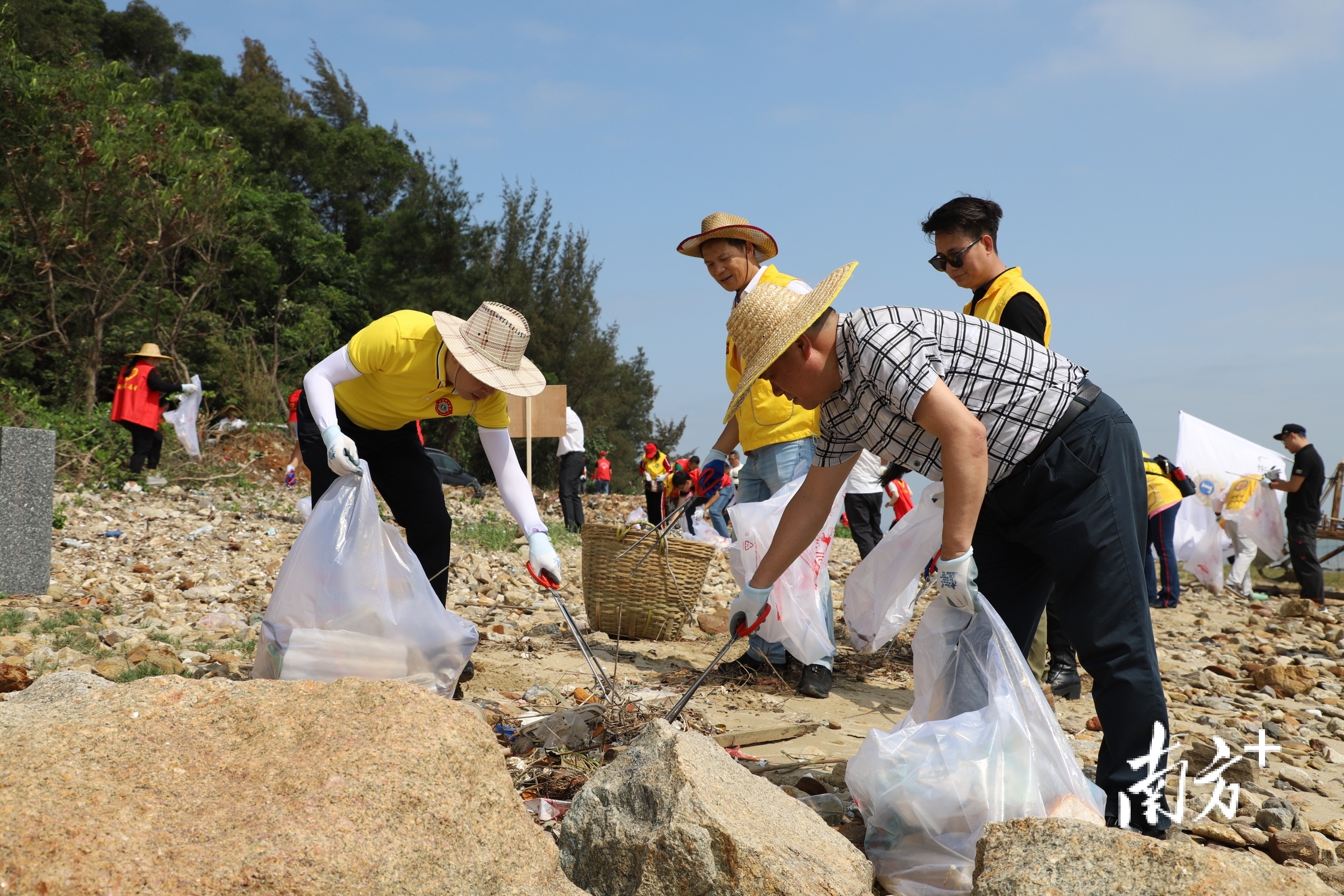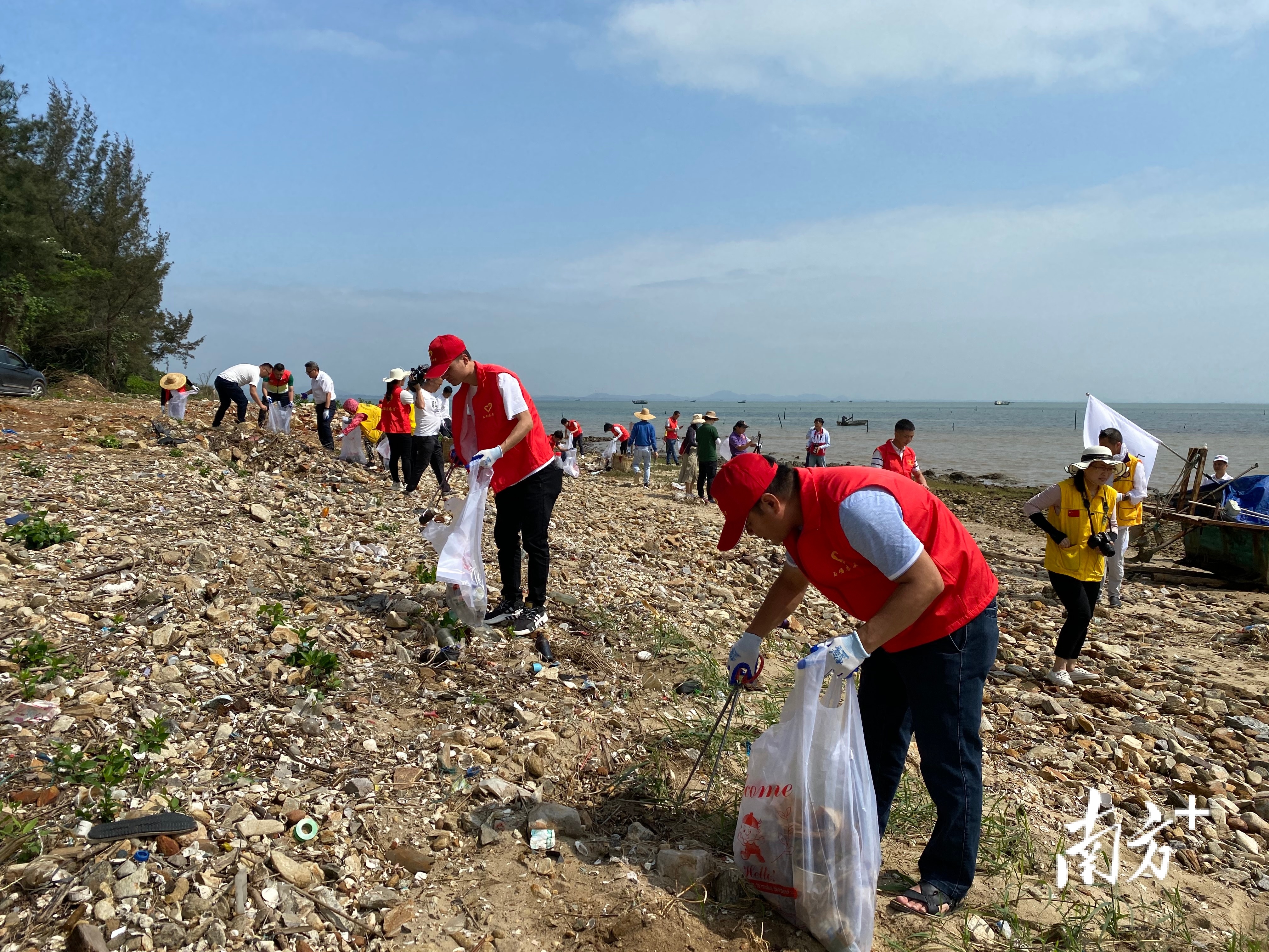 在红树林公园旁、灵谷山脚下的海岸边,记者看到,随着涨潮漂流过来的各类垃圾,散落在沙滩上。冒着户外热浪,志愿者们戴上手套,拿上垃圾钳,分成多支队伍,分区块展开净滩行动,并将垃圾按照纸类、塑料类等进行分类,便于后期回收。这些垃圾收集后将运送到海陵岛垃圾集中处理点。
