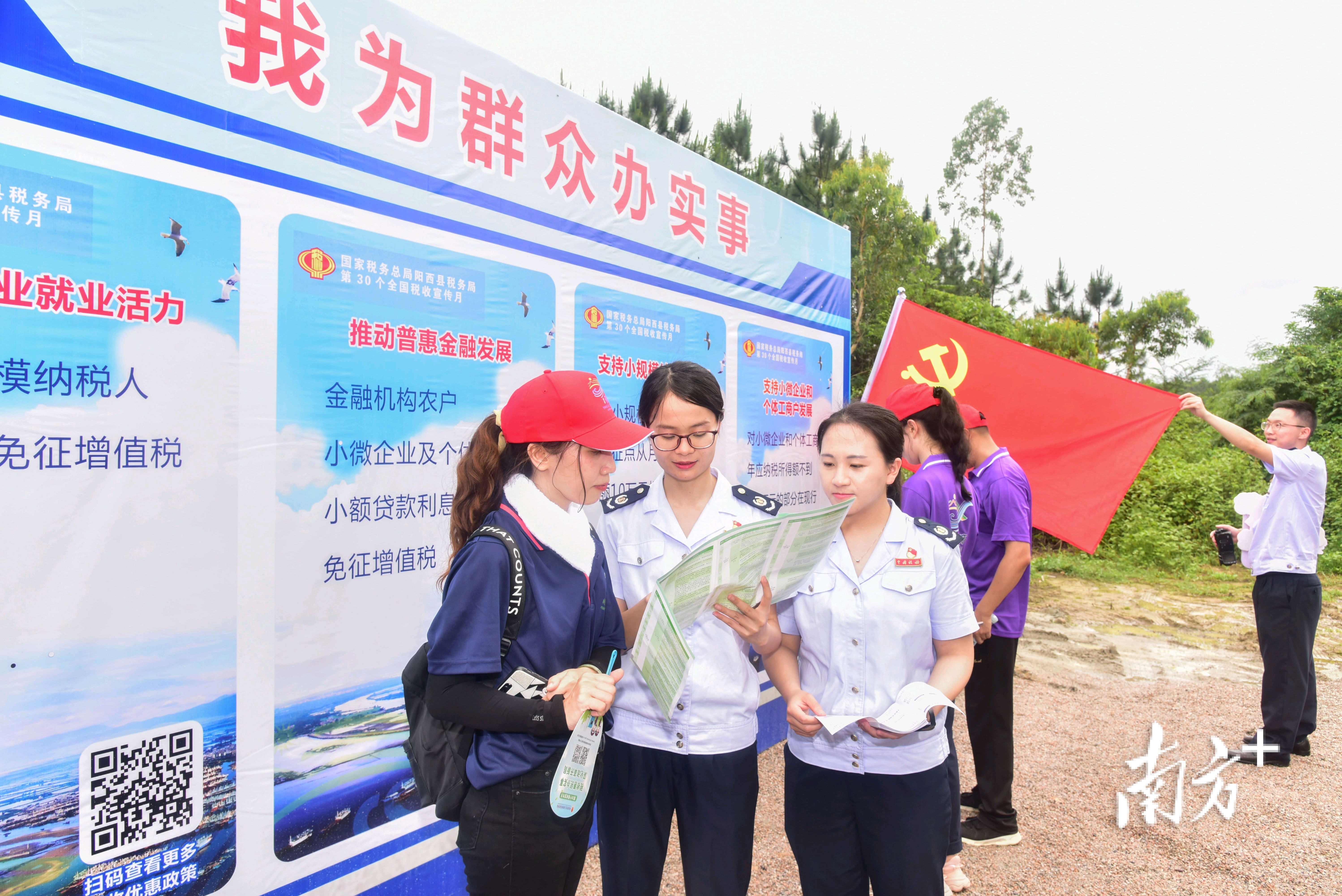 绿道途中,全国脱贫攻坚先进个人陈永利在现场助威击鼓,寓意鼓舞士气激昂斗志,擂响乡村振兴新一轮战鼓;而在蝴蝶谷,古筝爱好者在这里弹奏古筝,市民在打太极拳,画家在泼墨写生,显示了大美阳西的风情与浪漫;国家税务总局阳西县税务局工作人员在村广场举行税收宣传活动,彰显了阳西干部职工精气神……
