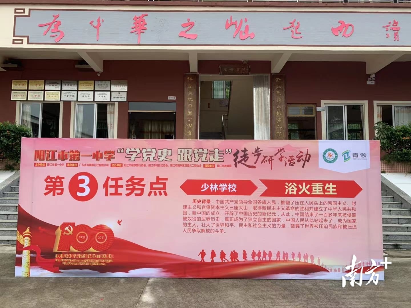 据了解,本次徒步研学活动路线全长约13公里,以红色教育为主题,沿途设有“星火燎原”“开天辟地”等多个打卡点,其中第三个打卡点“浴火重生”设在阳江少林学校。