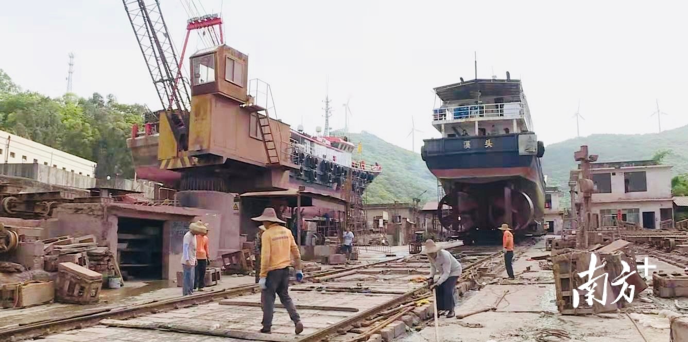 休渔后,在海上忙碌的阳江市海陵区闸坡镇的渔民都上岸休假了,而这个时候各渔船主趁着假期把渔船开到船排厂进行维修保养,确保渔船性能稳定,安全出航。