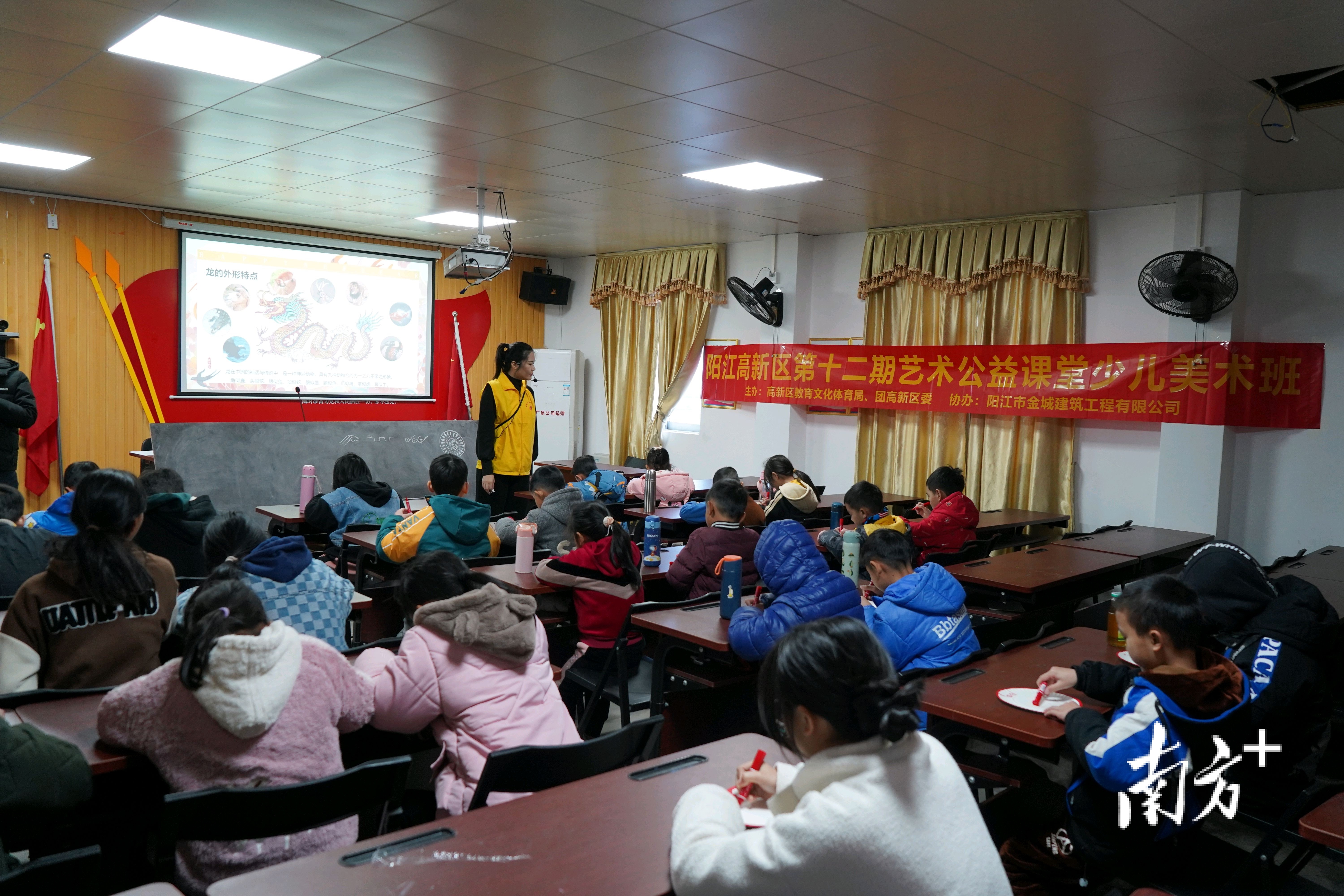 此次美术公益课由阳江滨海新区(阳江高新区)教育文化体育局、团阳江滨海新区(阳江高新区)委、平冈镇文化活动中心主办,爱心企业阳江市金城建筑工程有限公司协办,旨在引导辖区未成年人继承和发扬中华优秀传统文化,丰富少年儿童的寒假生活,营造浓郁的龙年节日氛围。