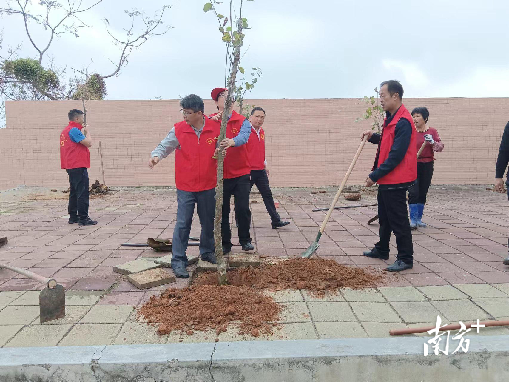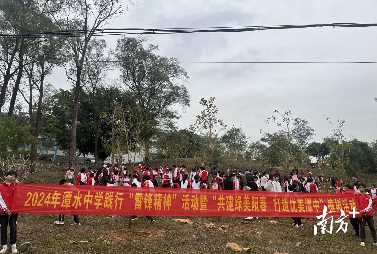 3月12日,广东两阳中学组织了主题为“绿美两中,情系岐山”的植树活动,500余名师生参加了活动,共种植了100株黄花风铃。
