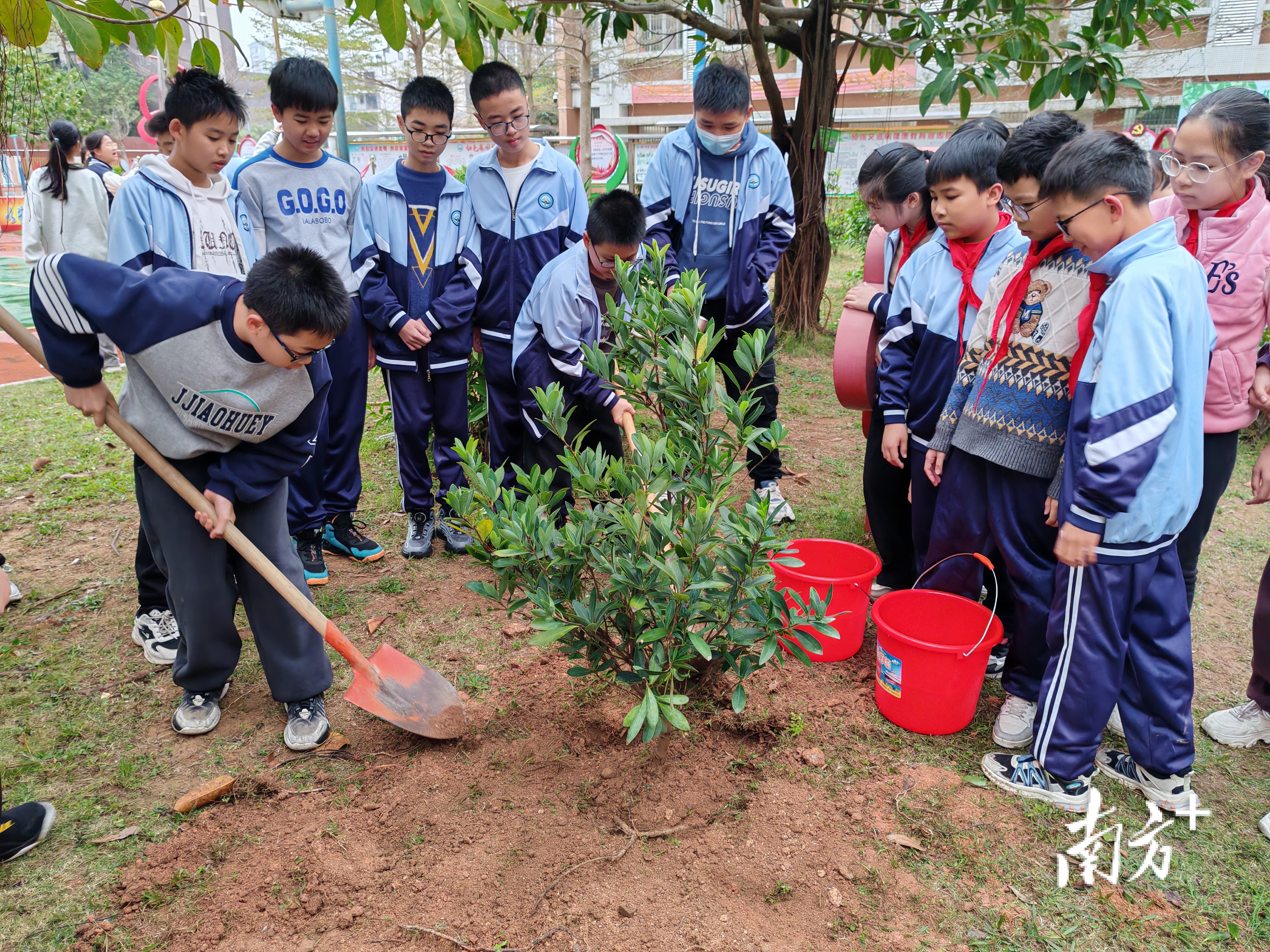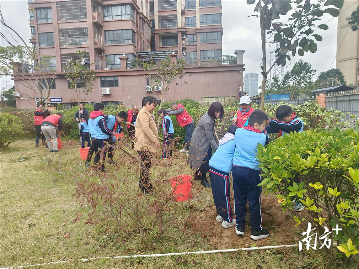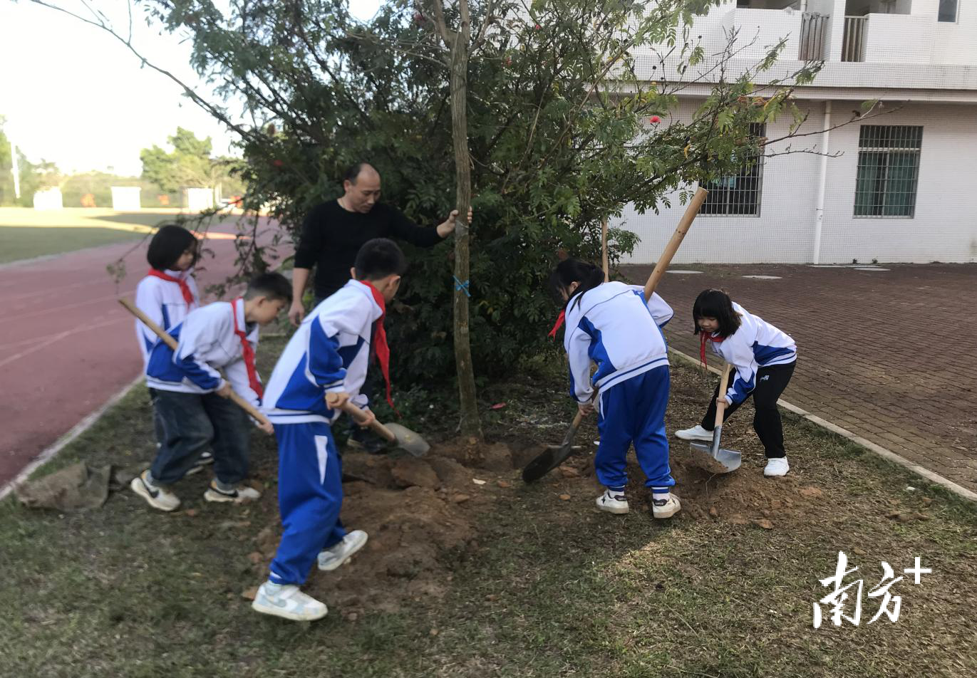 近日,阳东区合山镇第二小学开展了“绿美校园,我们在行动”植树志愿活动,以实际行动助力绿美阳江生态建设。此次活动不仅美化了校园环境,更增强了师生们的环保意识和团队协作精神。