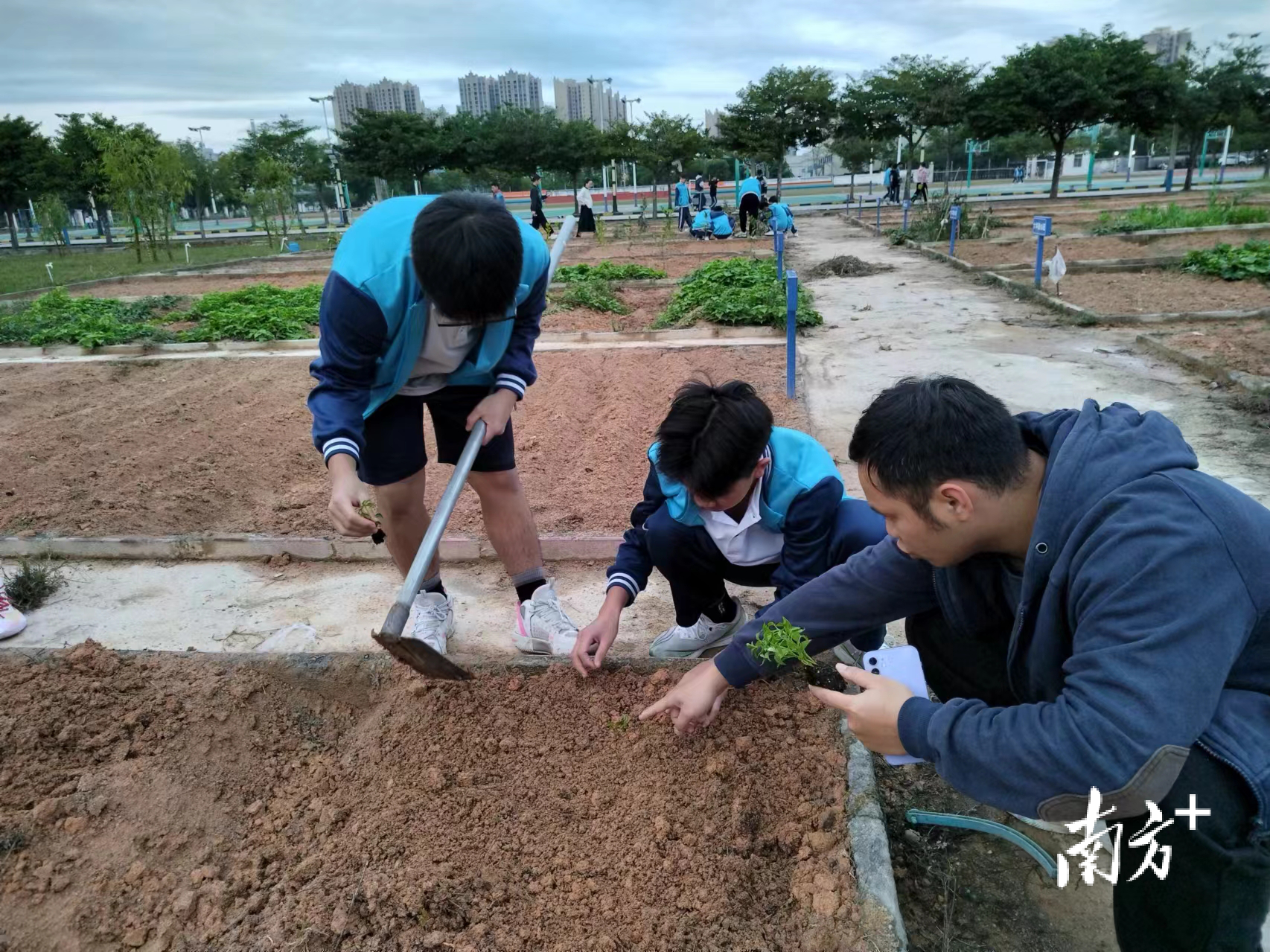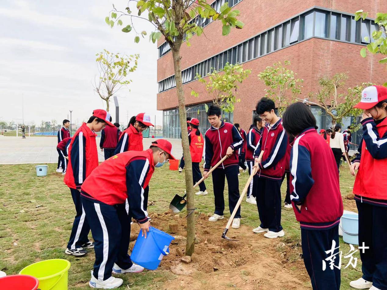 3月8日,阳江市教育局、团市委在阳江高级中学开展“绿美广东,青少年在行动”——阳江市“绿美校园”志愿植树活动。植树现场,大家三五一组,分工协作,挥锹铲土、扶苗填坑、提桶浇水,每道工序都认真细致、一丝不苟,现场一派热火朝天的劳动景象,为推动绿美阳江生态建设,科学精准扩绿增绿贡献了自己的一份力量。