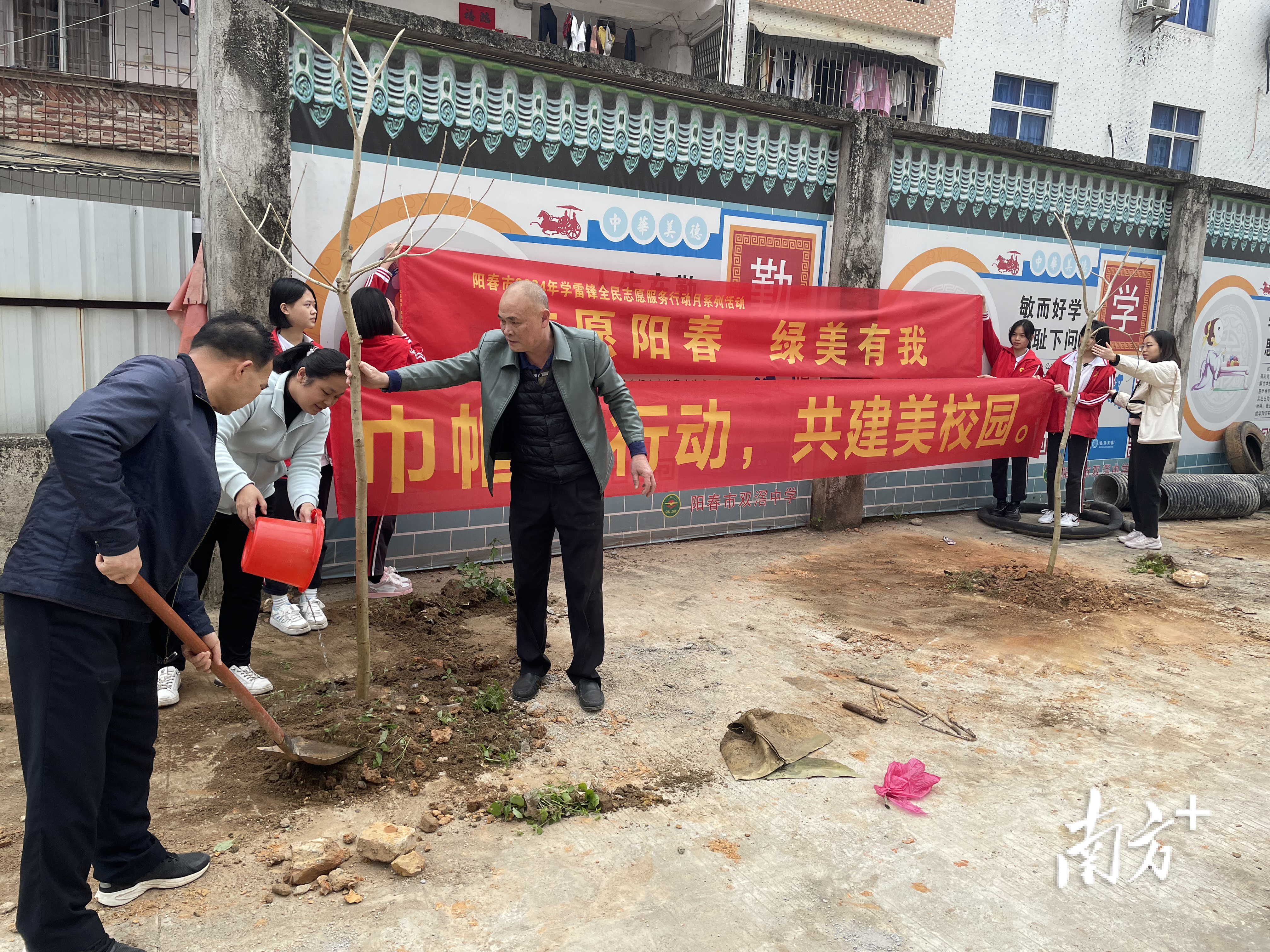 3月12日,双滘中学组织了“巾帼在行动,共建美校园”“志愿阳春、绿美有我”等植树活动,校长带领师生、志愿者到学校闲置地里种植花草树木。大家手扶苗木、挥锹培土,虽然天气微凉,但劳动热情不断“升温”,现场气氛热闹欢快。