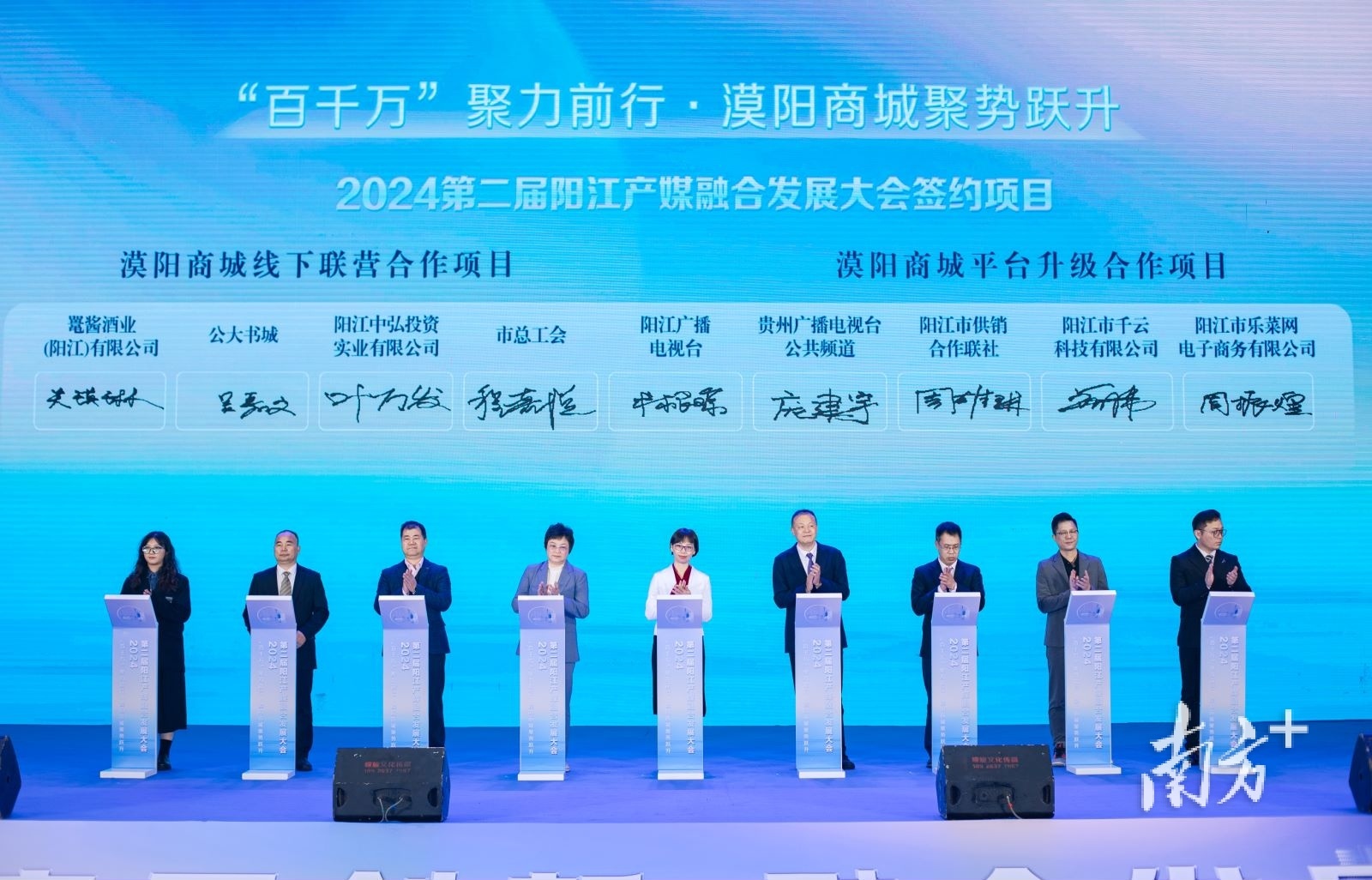 据了解,去年以来,阳江广播电视台确立了任务项目化、项目促全盘的工作方法,今年又谋划了一批产媒融合推进漠阳商城建设的重点项目。经过扎实推进,这些项目在大会上正式签约,其中漠阳商城平台升级合作项目和漠阳商城线下联营合作两个项目共由9个单位共同打造,签约项目通过整合海鲜产品供应链、线上销售平台、线下实体店,搭建起漠阳商城线上线下双管齐下的运营新模式。