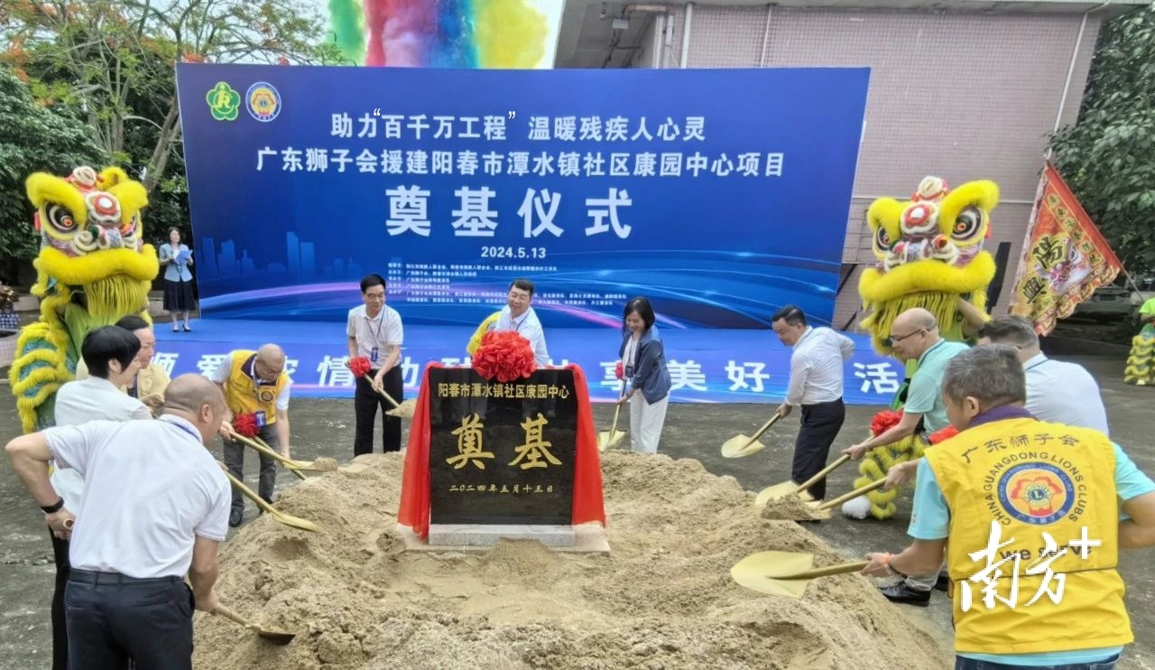 5月13日,广东狮子会助力“百千万工程”援建阳春市潭水镇社区康园中心项目奠基仪式在潭水敬老院举行。广东省残疾人联合会三级调研员谢向东,阳江市残疾人联合会理事长莫洁兰,阳春市委常委、副市长黄忠宏,广东狮子会代表及各界嘉宾参加了奠基仪式。