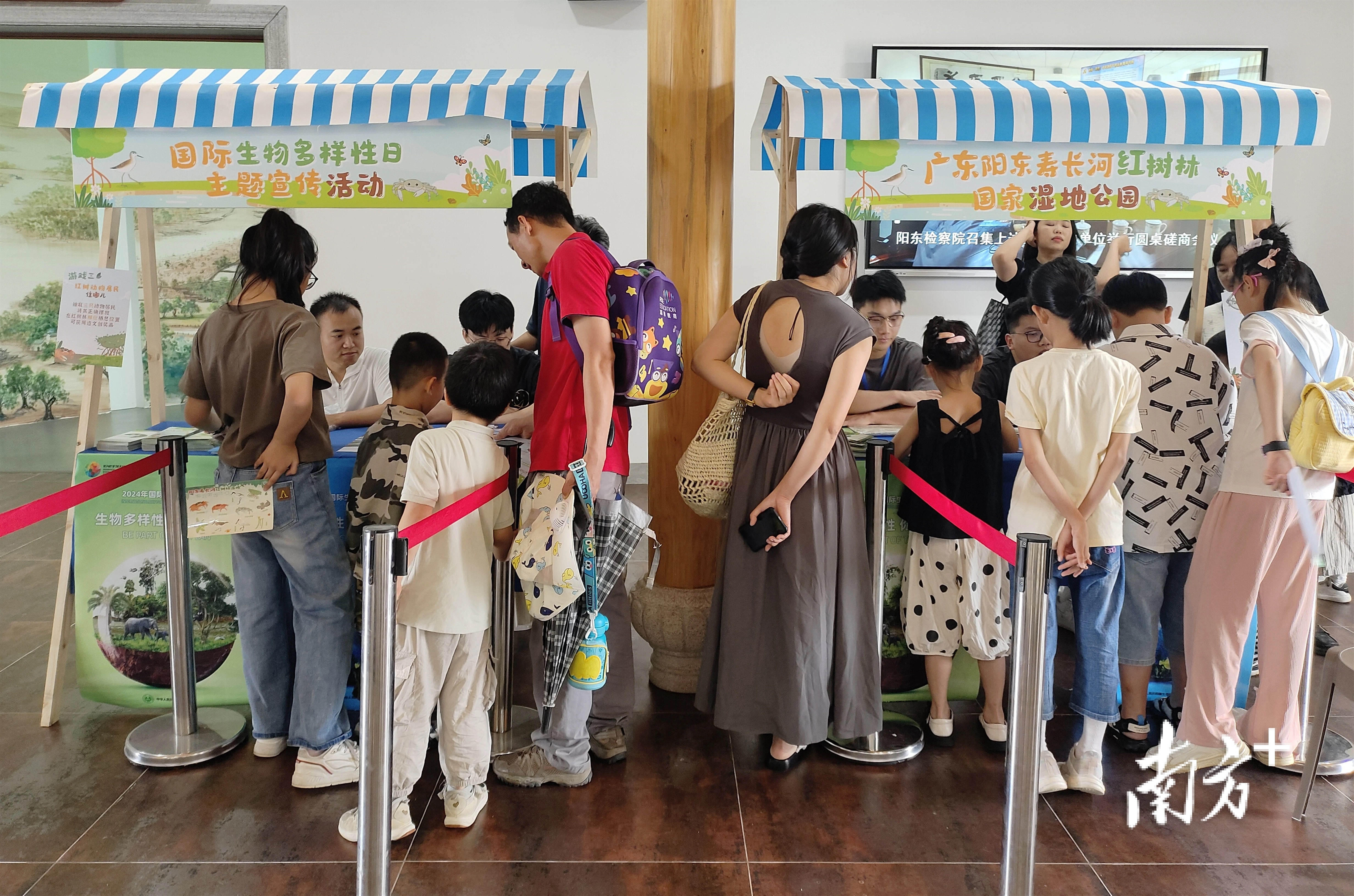 为宣传生物多样性保护及生态保育相关工作,号召公众自觉成为自然生态守护者,活动现场除了派发广东阳东寿长河生物多样性趣味宣传折页,还设立了“红树林物种拼拼看”“红树动物居民住哪儿”等互动体验游戏,市民游客成功通关游戏,可赢取寿长河红树林国家湿地公园的文创周边,包括“寿长河湿地动植物”原创手绘贴纸、湿地公园纪念风扇等。