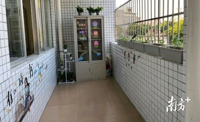 罗文富所带班级外有一条原本空旷的走廊。这在旁人眼中普普通通的过道,在罗文富的奇思妙想下,竟变成了一个充满诗意的花园。