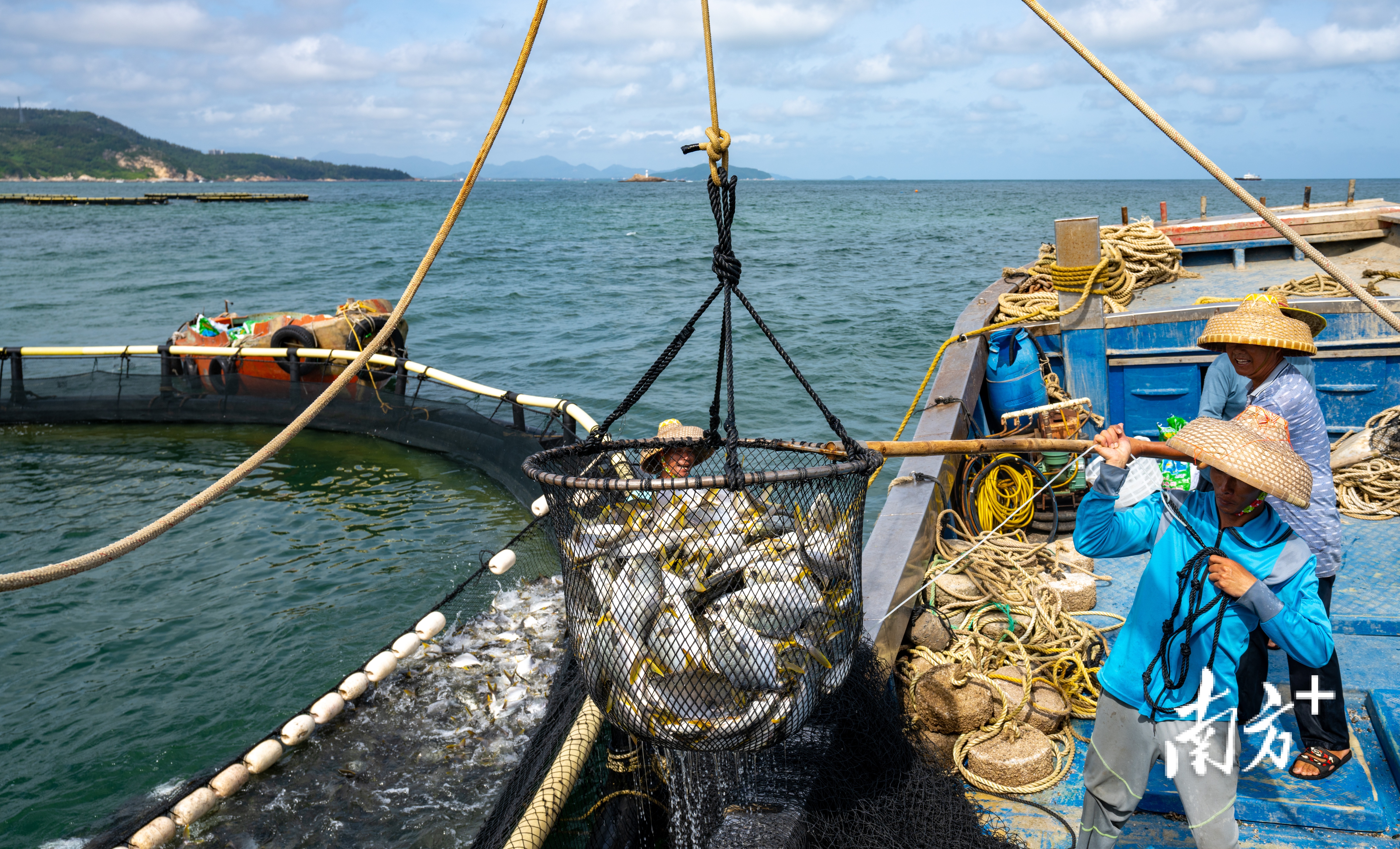 “深海网箱养殖的海产品不愁销路,金鲳鱼等海产品的收购价格也比较理想。”一家从事深海网箱养殖的阳西企业负责人介绍说,每投放两个网箱就能捕到一万多斤鱼。深海网箱养殖的鱼类肉质鲜美,除了供应本地之外,阳西渔港周边的加工厂也会大量收购。
