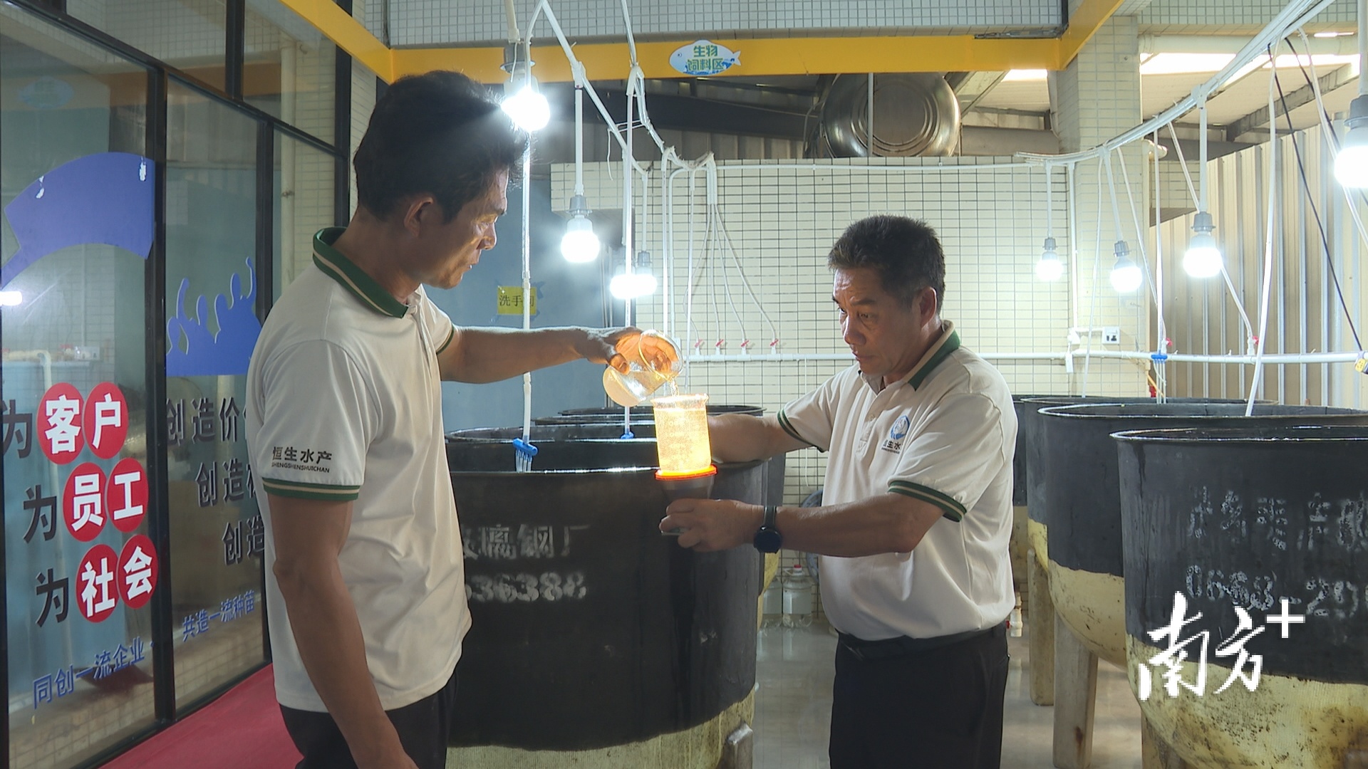 “20世纪90年代,阳西不少养殖户开始发展人工孵化种苗,但生产条件和技术不成熟,鱼苗孵化率、经济效益都不高。”作为阳江市海水种业创新发展协会会长,该公司负责人陈朝从事海水种苗行业已近30年,他每天都在面积7200平方米的工厂化鱼苗繁育场忙碌着。