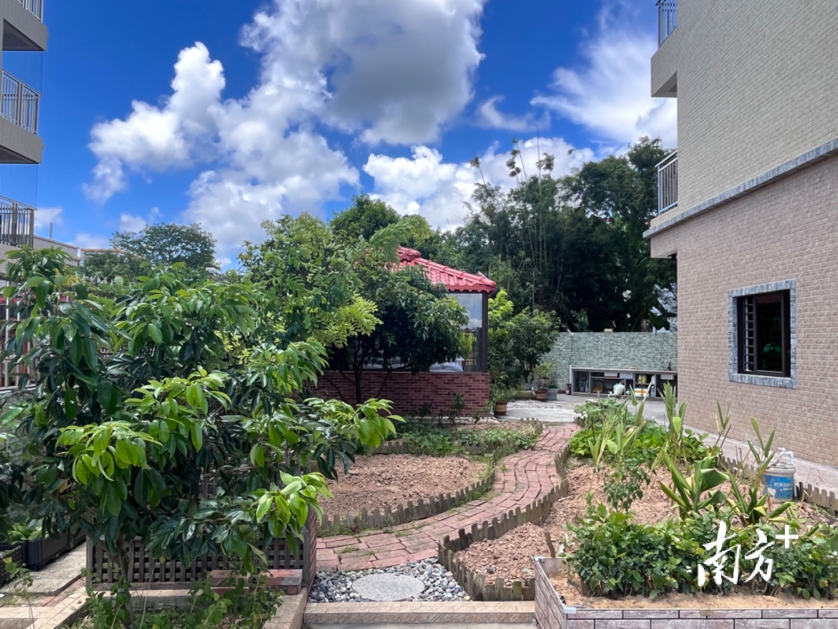 踏入郑丽雅家的庭院,便有阵阵桂花香气扑鼻而来。庭院之中,茉莉花、荔枝树等错落有致,还有众多品类的花草点缀其间。院里不仅有生机盎然的菜园,还有灵动的金鱼池。