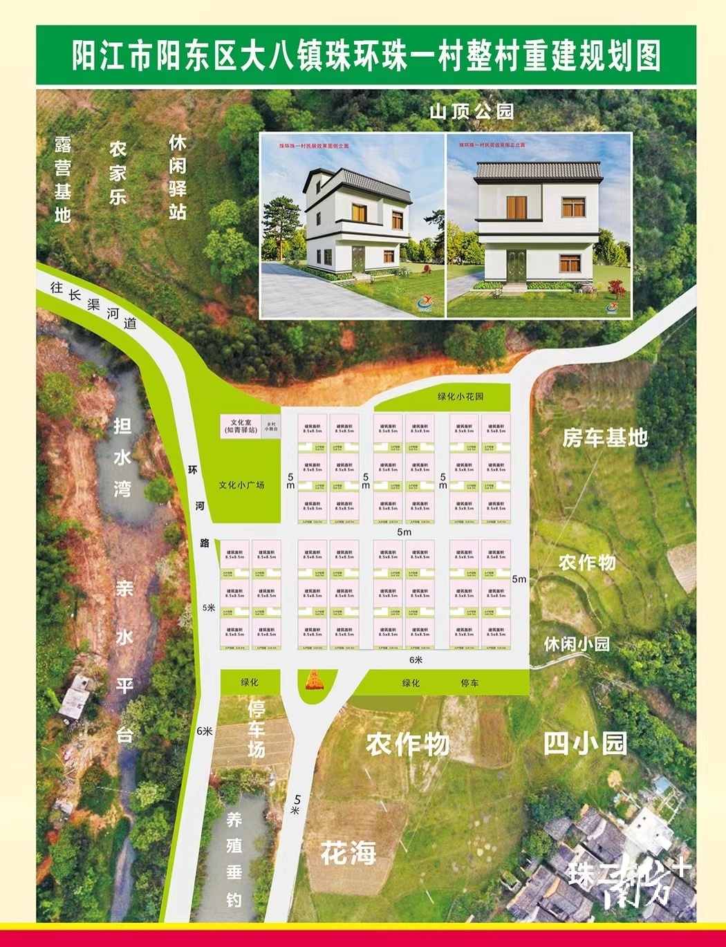 “这就需要规划了。”岑自洪说,整村重建,一定是规划先行。经过多次协商,岑叙球、岑自洪和乡贤代表终于在广泛收集村民意见的情况下,按照统一规划、统一布局、统一设计、统一外立面的“四个统一”建设理念,编制了《珠一村整村重建规划图》,他们重新规划建设42户整齐有序的二层半岭南风格乡村民房,并将村文化广场、绿化公园等公共设施一体进行规划布局。