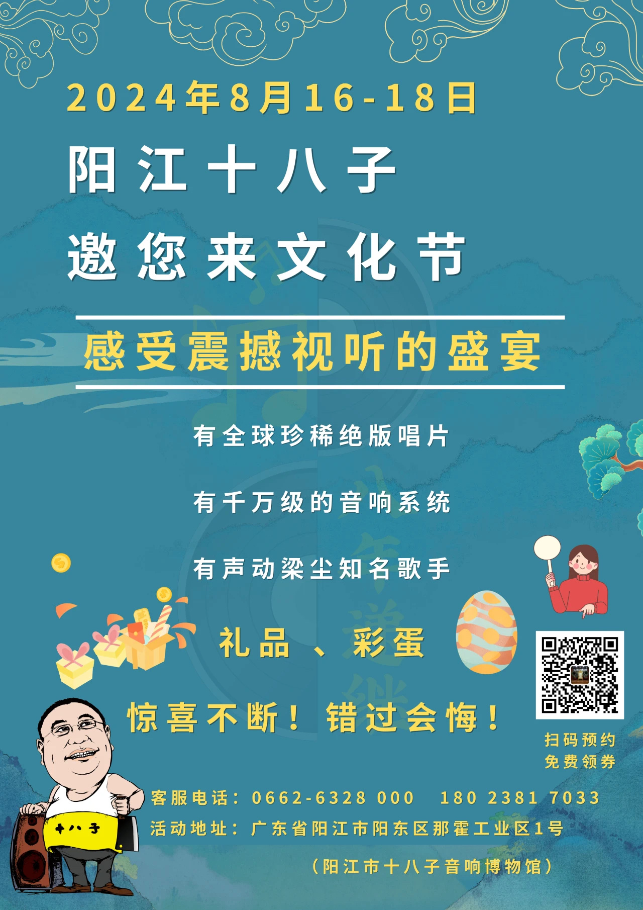 记者近日获悉,8月16日至18日,由阳江十八子文化科技有限公司主办的“阳江十八子音响音乐文化节(2024)”将于阳江市十八子音响博物馆举行。