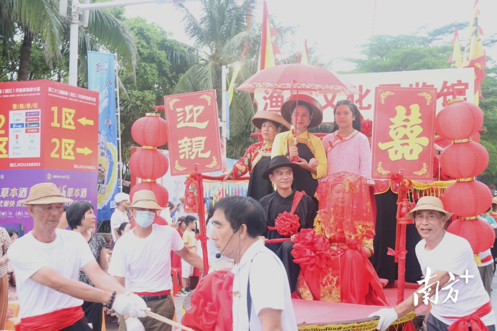 在渔家大宴现场,同时举行的还有渔家婚嫁民俗表演活动。此次表演的主要为海陵岛“闸坡疍家婚俗”,其已入选广东省级非物质文化遗产名录。