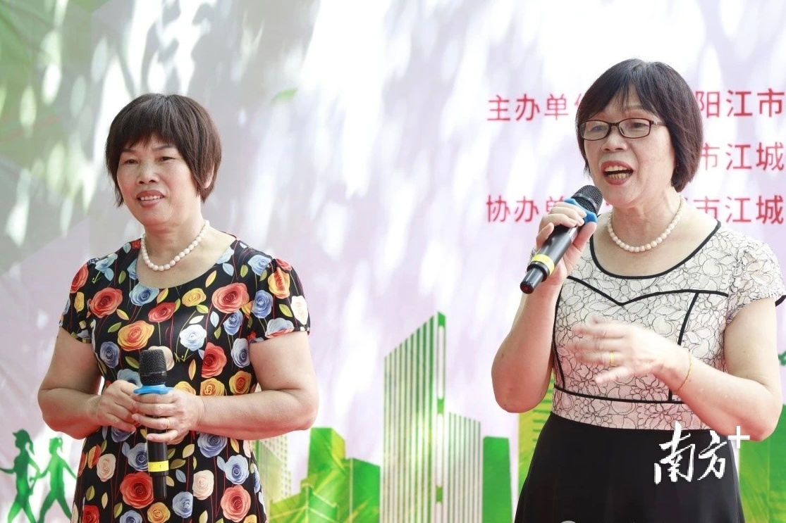 唱:“工业园区系厂房,荒山种果又栽桑。你看江城刀剪靓,漂洋过海响当当。”答:“万众高歌夺锦囊,漂洋过海响当当。风味白沙鹅乸饭,眼荔枝传四方。”原创阳江山歌《江城百业更辉煌》以一唱一答形式,融入各镇(街道)经济、文化和发展特色,村民们听得入迷。