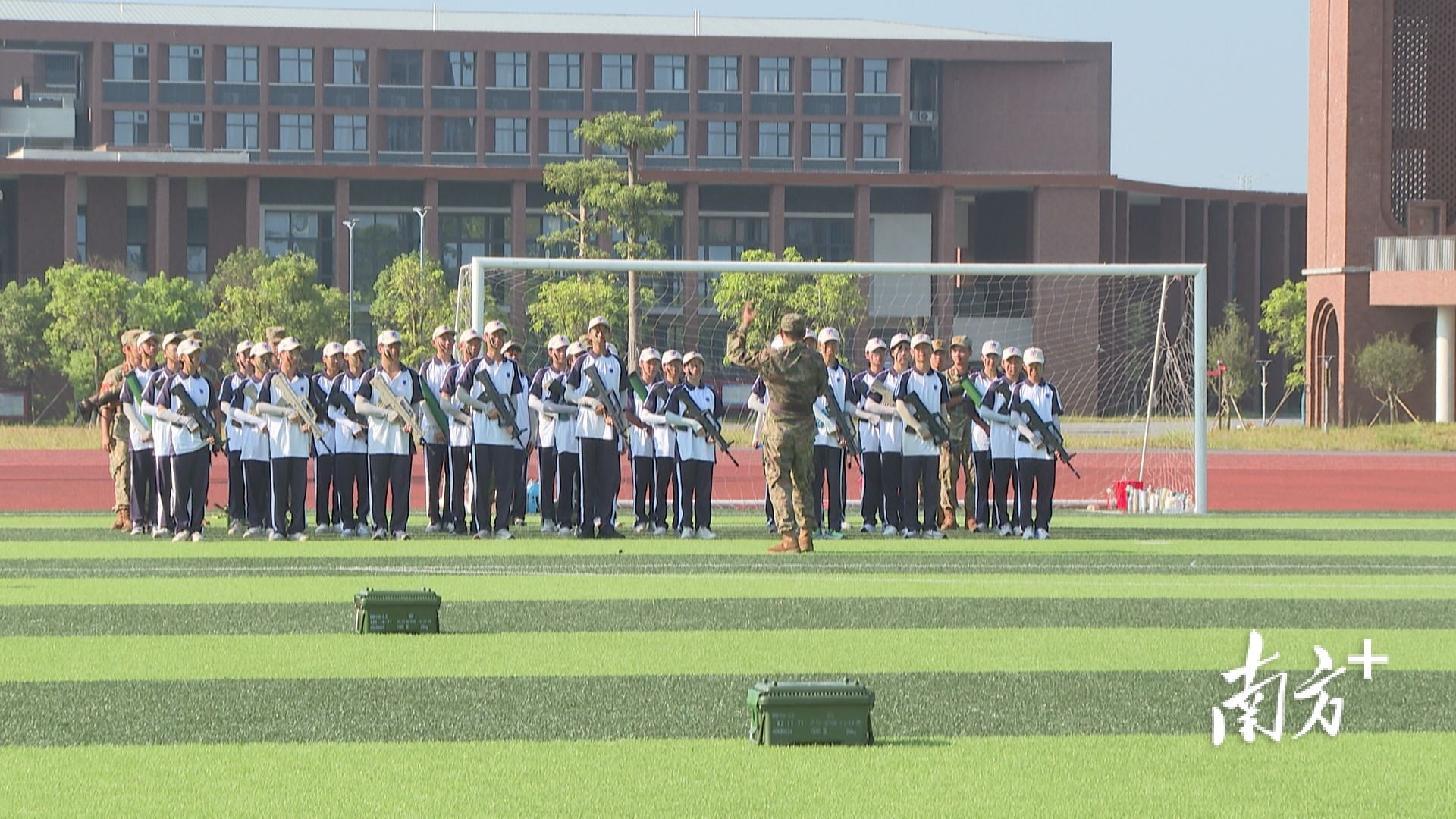 在学校足球场上,经过军训锤炼的高一新生们列队整齐,以挺拔自信的军姿、昂扬的姿态迎接检验。检验内容包括单人队列动作、方阵汇演、战术分队行动等。大会还对内务评比优秀宿舍、军训标兵班集体、军训汇演现场优秀班级进行了表彰。