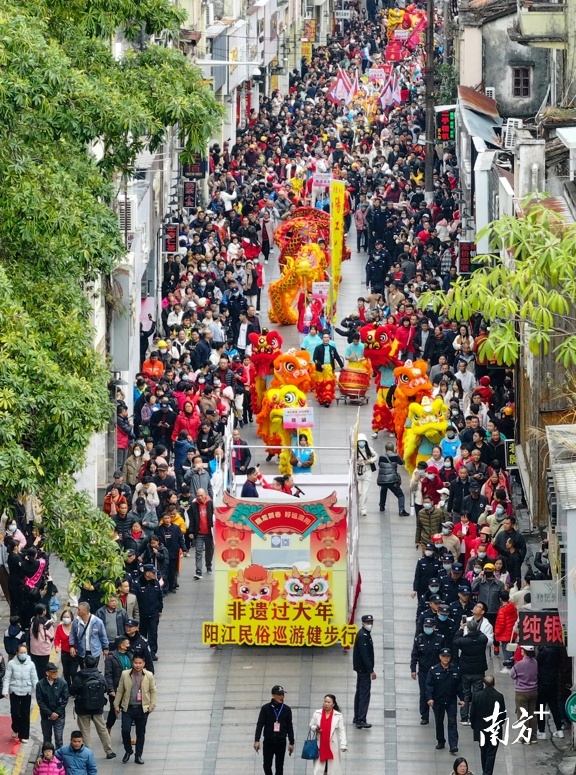 古韵新风,文化江城。而今年春节,阳江市民最大的热点之一,当之无愧是被重新激活的“鼍城行大运”传统民俗活动和在老街区举行的阳江民俗巡游健步行活动,“九街十二巷”唤醒阳江人的老记忆,“人挤人”的老街让年味更加浓郁。