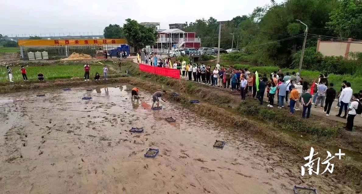 在街道和村干部的推动下,阮西村成功引入广东稻花禾虫科技开发有限公司与阳江职院陈兴汉博士团队,联合打造了“水稻+禾虫”生态科技园。该园区利用禾虫的自然生长习性,通过禾虫改善土壤质量,促进稻苗生长,推广了“水稻+禾虫”的高效综合种养模式。到2023年,禾虫科技园已产出30亿尾种苗,带动了上百人的就业。