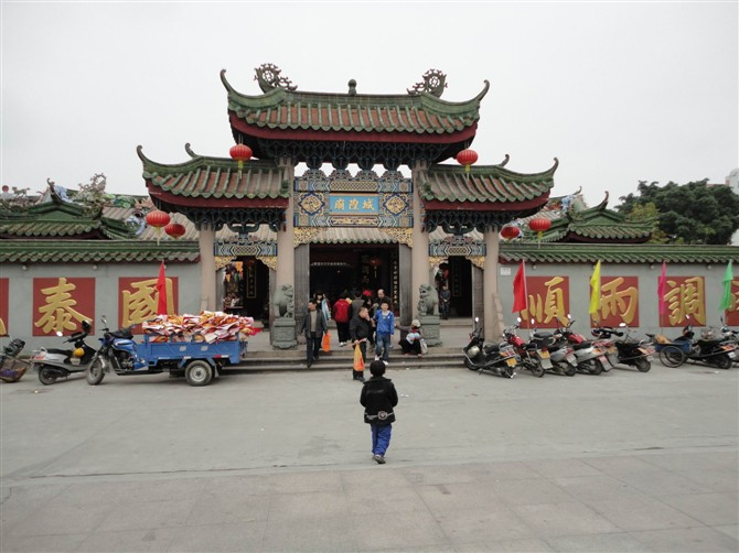 揭阳城隍庙是广东省现存最大规模的同类古建筑。城隍是古代中国民族宗教文化中普遍崇祀的重要神祇之一,大多由有功于地方民众的名臣英雄充当,是中国民间和道教信奉守护城池之神。揭阳城隍庙位于广东揭阳东门城隍街,建于宋绍兴十年(1140年),明洪武二年(1369年)县丞许德重建。为省级重点保护文物单位。揭阳城隍庙建筑融合了明清建筑风格和潮汕地方传统工艺特色。主体建筑为木、石承载结构,力学结构科学严谨。大殿四壁仅仅起着防护作用。建筑结构防震性能很高,历经明代以来几十次地震,巍然不动,展现了古代中国劳动人民的聪明智慧和高超的建筑技艺。成了今人研究古代建筑的标本。