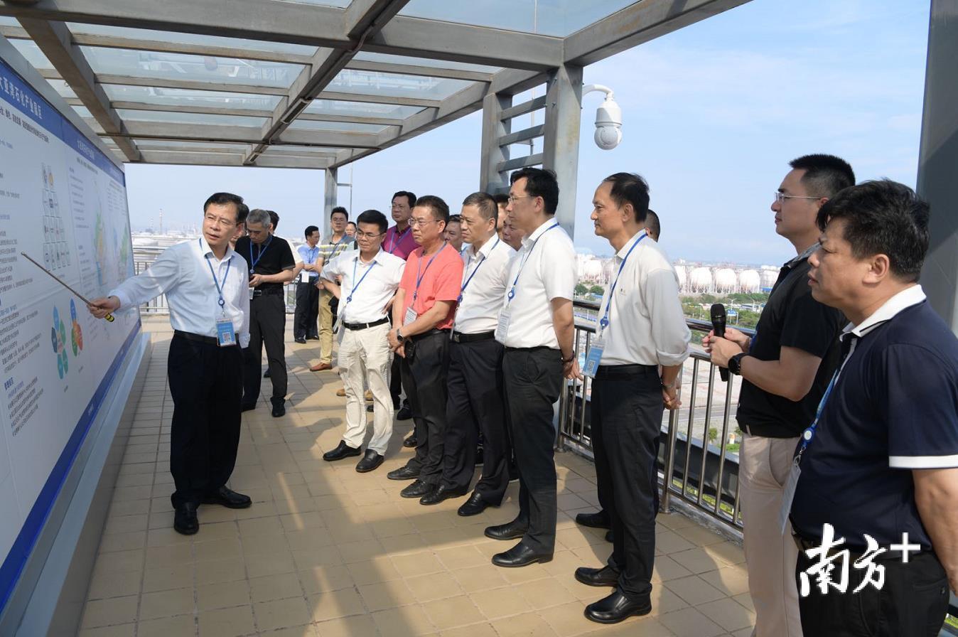 在惠州大亚湾石化产业园区学习考察期间,惠州大亚湾区委书记范志益陪同活动。刘光明带领学习考察团实地参观了中海油惠炼二期项目、中海壳牌公司展厅、国家危险化学品应急救援惠州基地等,听取有关项目负责人介绍大亚湾区建设世界级绿色石化产业基地、中海油炼油一期生产运营、二期生产建设、中海壳牌化工一期生产运营、二期生产建设,埃克森美孚惠州化工综合体项目、国家危险化学品应急救援惠州基地情况,并观看了宣传片。