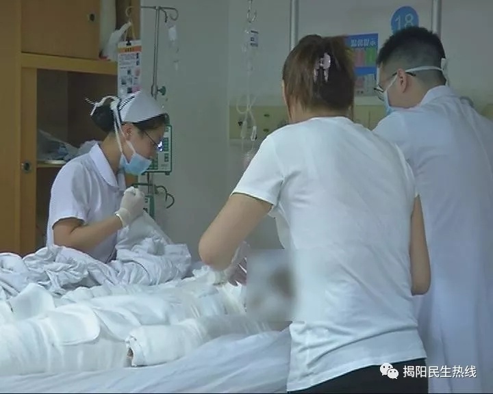 记者在揭阳市人民医院烧伤和整形科的病房看到,医护人员正在为阿伟进行治疗。据了解,阿伟是独自住在租房,本月15日晚,阿伟的一个同事来到阿伟家里过夜。隔天中午,阿伟起床时发现家里有点不妥。