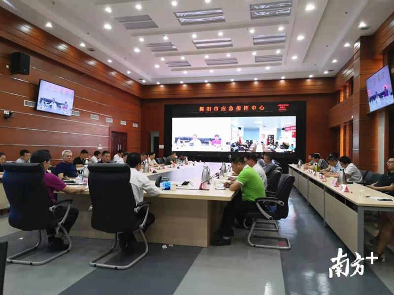 23日下午15时,揭阳市三防指挥部组织召开全市防汛防台风工作视频会议,揭阳市副市长、市三防指挥部总指挥曾瑞如进一步部署防御工作。揭阳市已派出七个督导组,奔赴全市10个县(市、区)开展防汛防台检查督导。