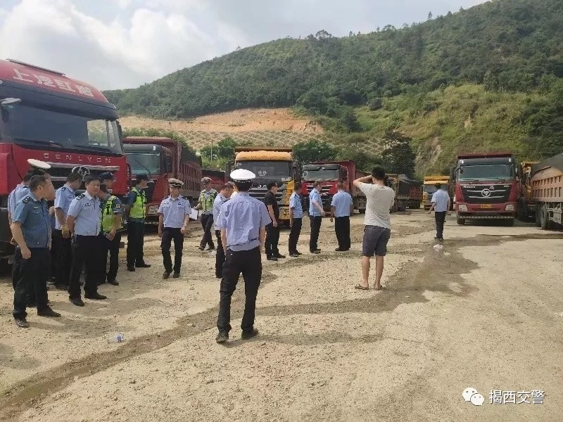 近期,在揭西县从严“治超”态势下,一些载沙重型货车跟路面交警、交通执法人员玩起了“躲猫猫”把戏。10月10日上午,经县公安交警巡查中发现:国道G238线五云公路赤告路段毗邻五华县的一处路边临时堆沙场,存在着有39辆满载河沙涉嫌超载的重型货车聚集在一起,伺机逃避执法检查的情况,遂将该情况向县委、县政府报告。