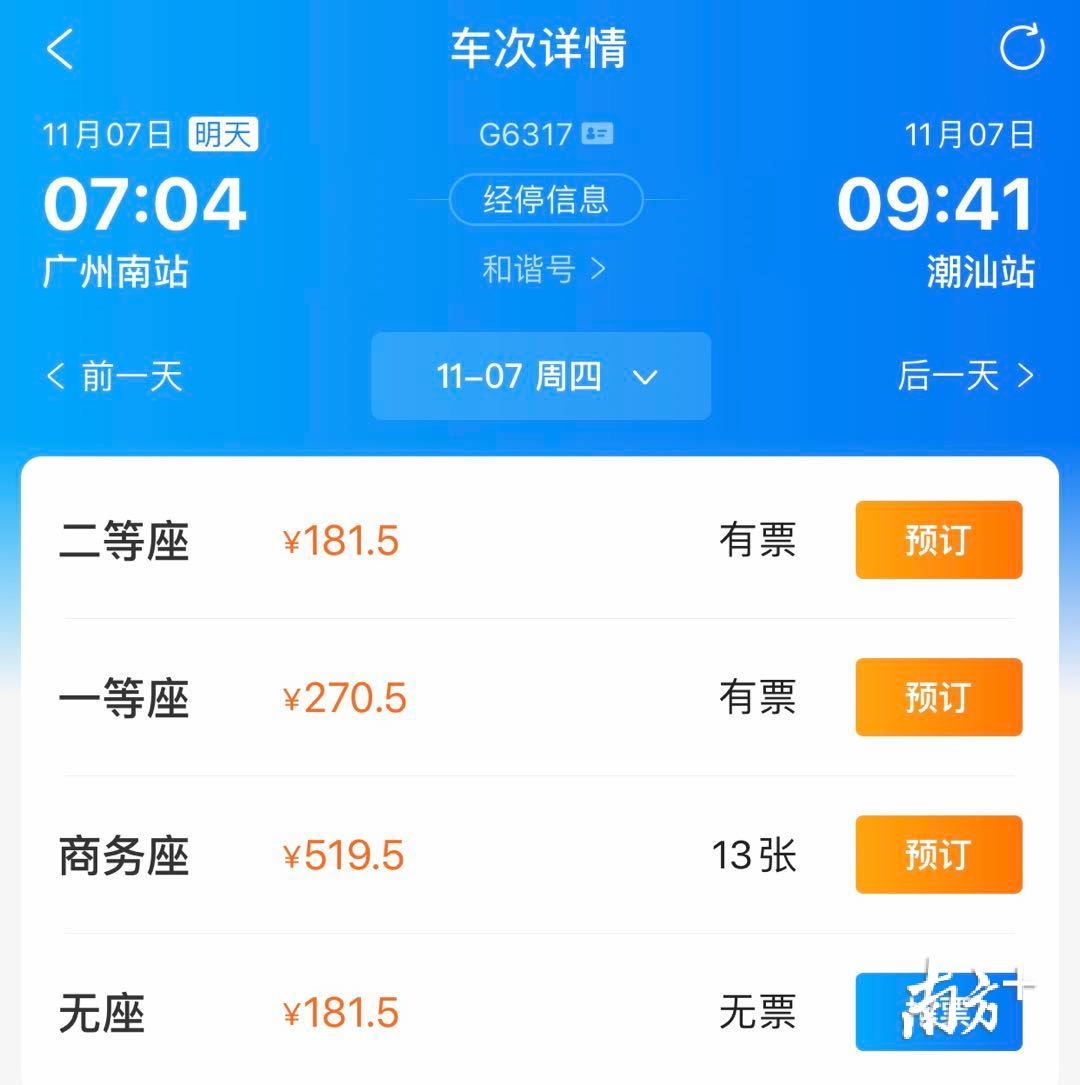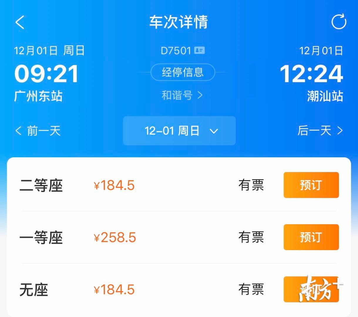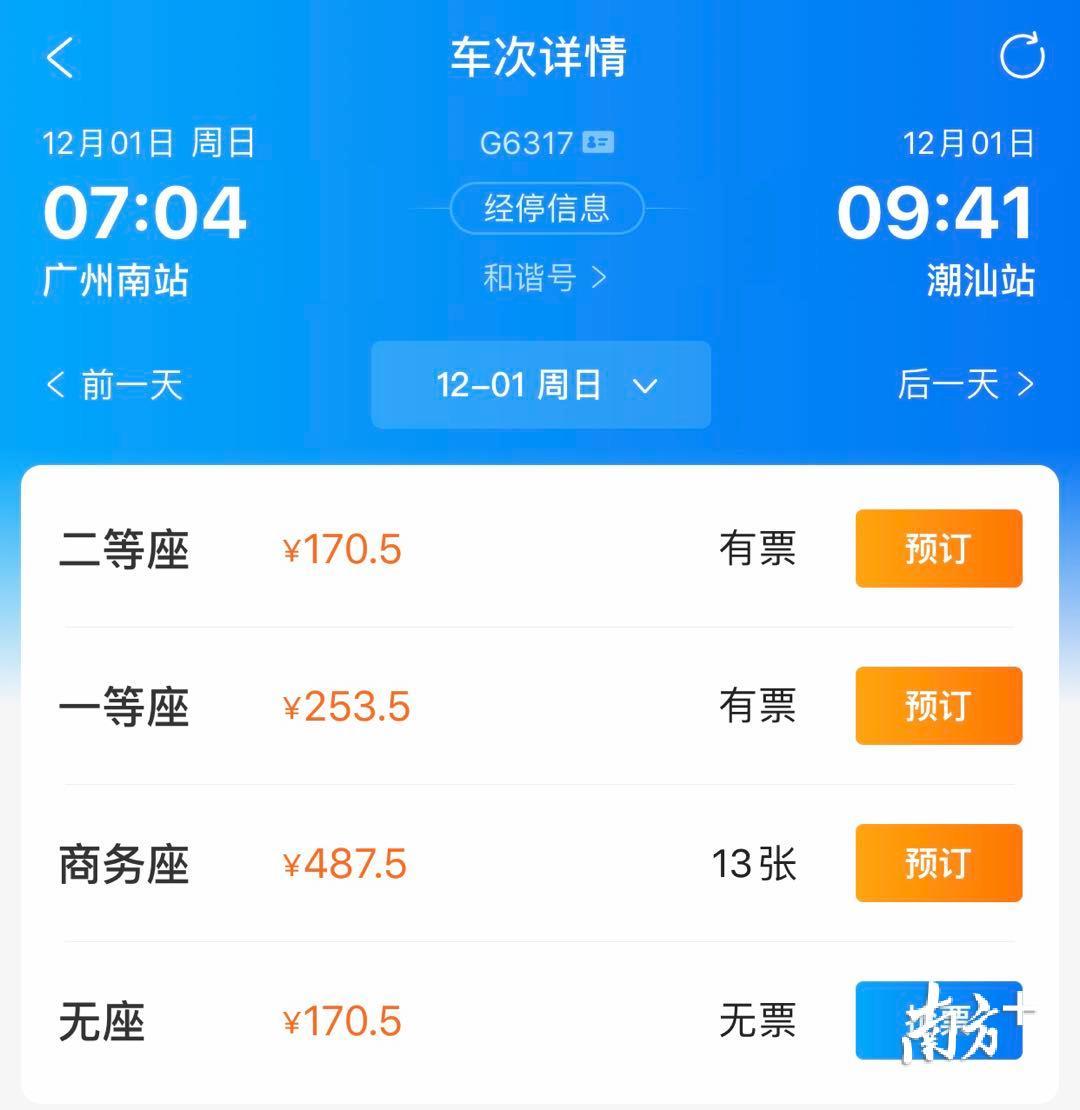 广铁受此影响的主要是广州到潮汕、梅州、厦门、南宁这几个方向的列车,南方+记者搜索了广州到潮汕、梅州、厦门、这三个方向经停揭阳站/潮汕站的相关票价发现,12月1日的高铁票价已经有所调整。关于票价优化调整的具体情况,旅客可登录12306网站或通过当地车站公告查询。