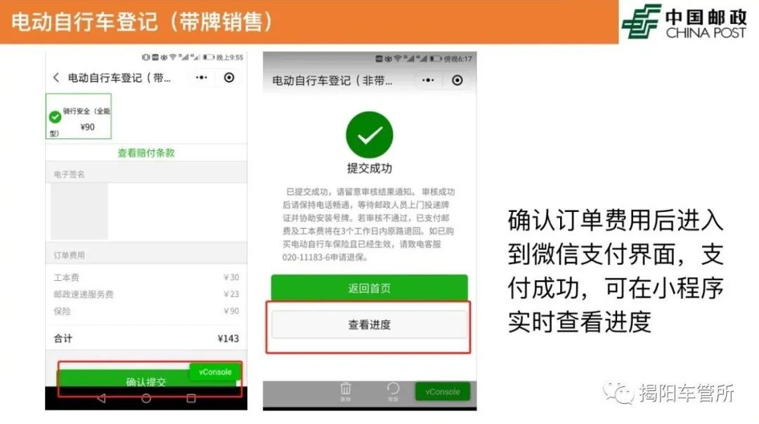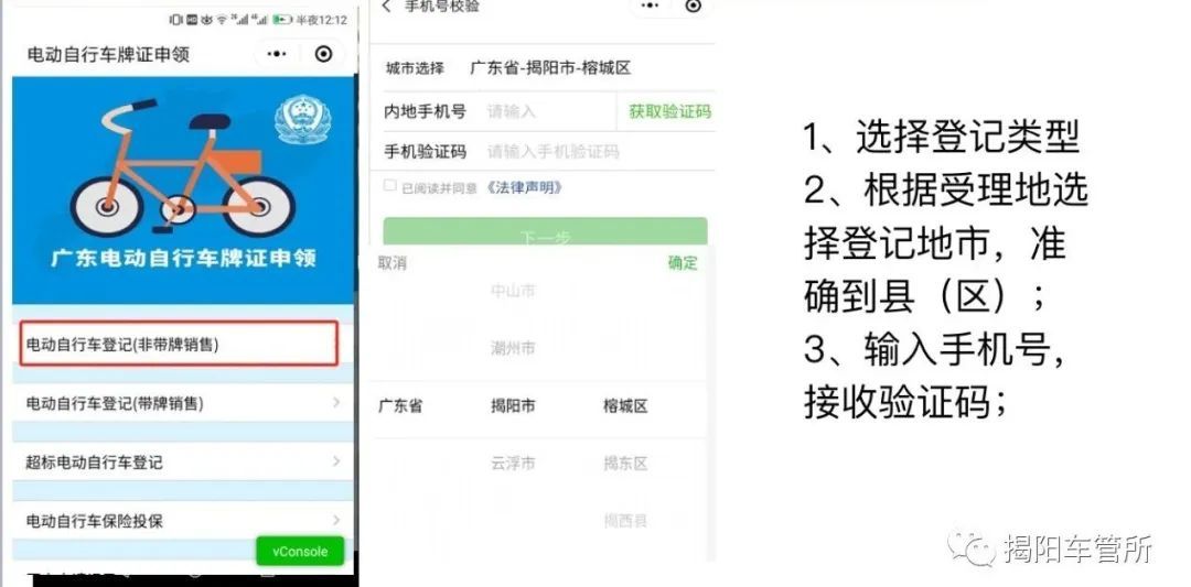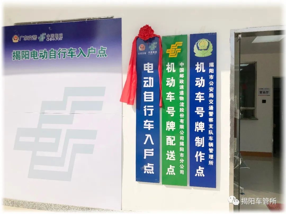 为拓宽电动自行车登记上牌渠道,便于群众办理,2月28日,揭阳交警正式启动邮政代办电动自行车登记上牌业务服务网点,符合登记管理规定的电动自行车登记上牌可到临近的服务网点进行办理。