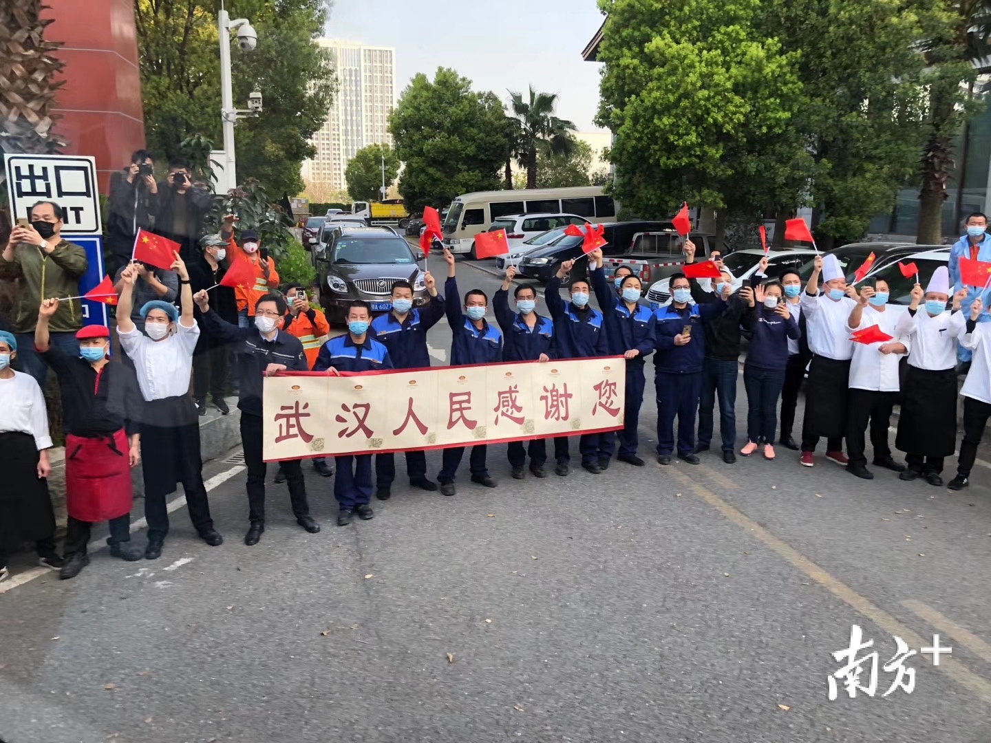 “在前往高铁站的路上,武汉居民在高楼楼层的窗口阳台看见我们,他们也会很激动,有的是一家4口抱着小孩子向我们挥手。我们都感动到流眼泪。”王智娜说。