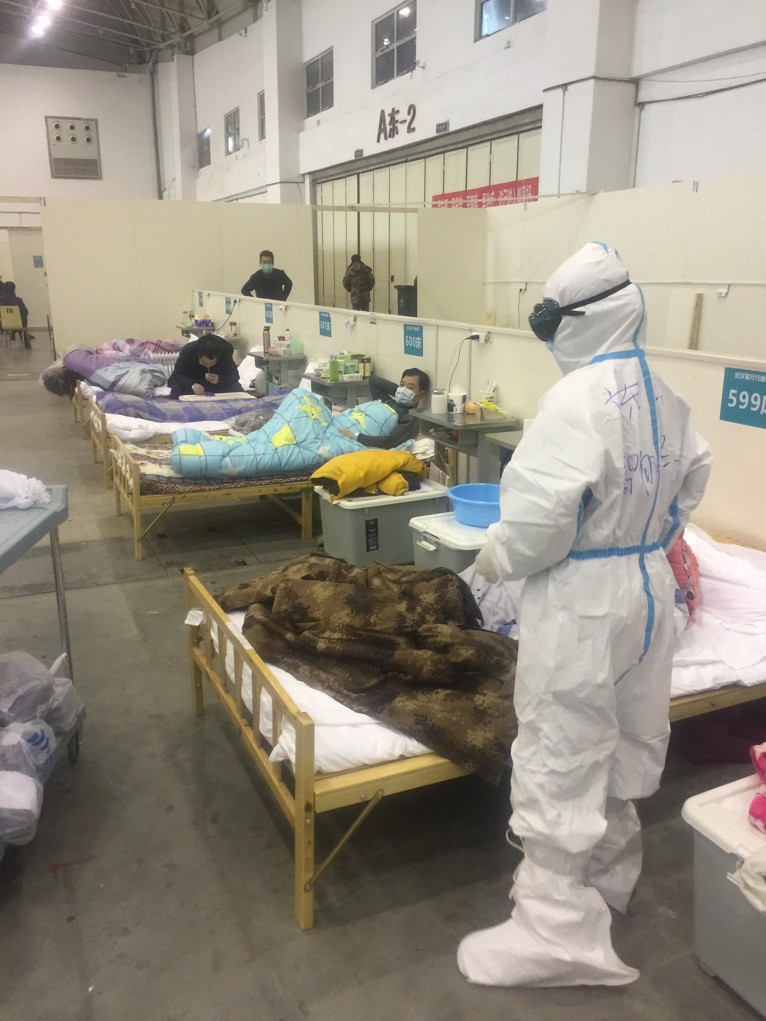 王智娜一开始在武汉客厅方舱医院A仓D区工作,后来转到A舱A区。