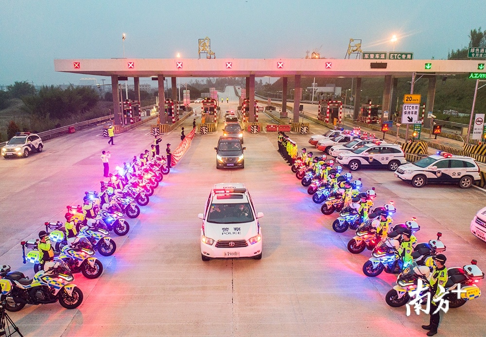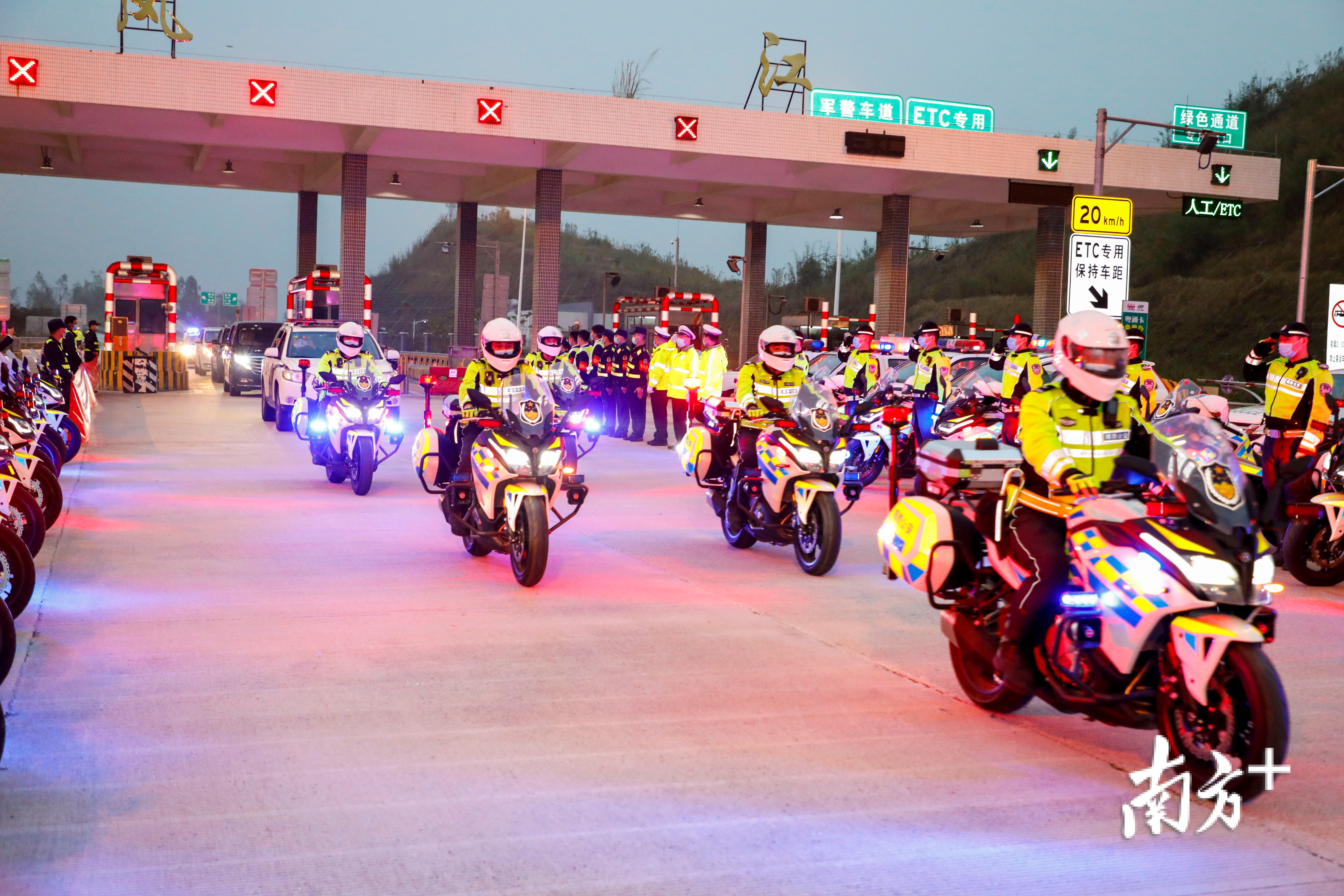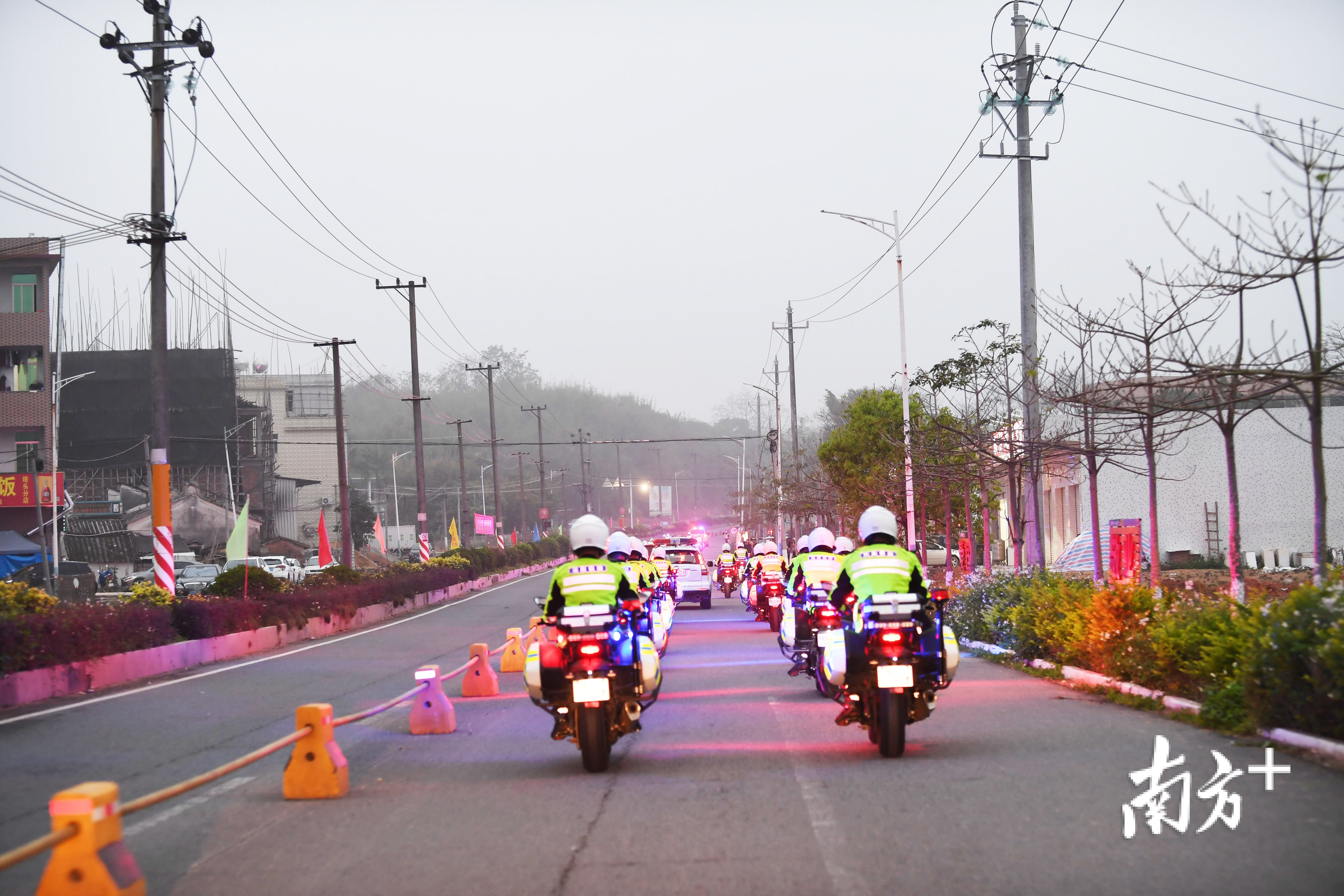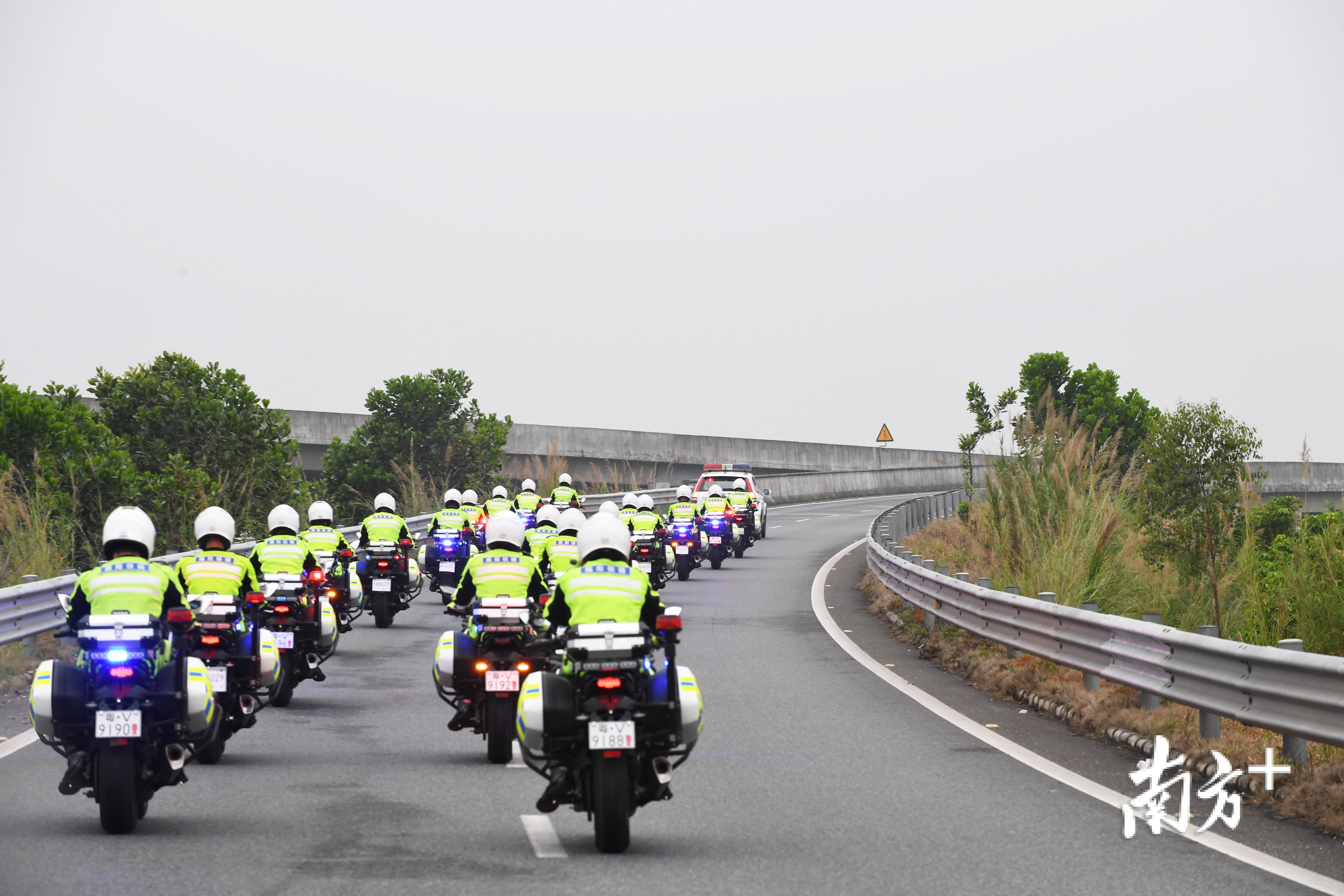 随着载着医疗队员的车队驶出揭西县凤江高速口,揭阳交警支队派出250余名警力、25辆铁骑车和20余辆警车,为医疗队开路护航。
