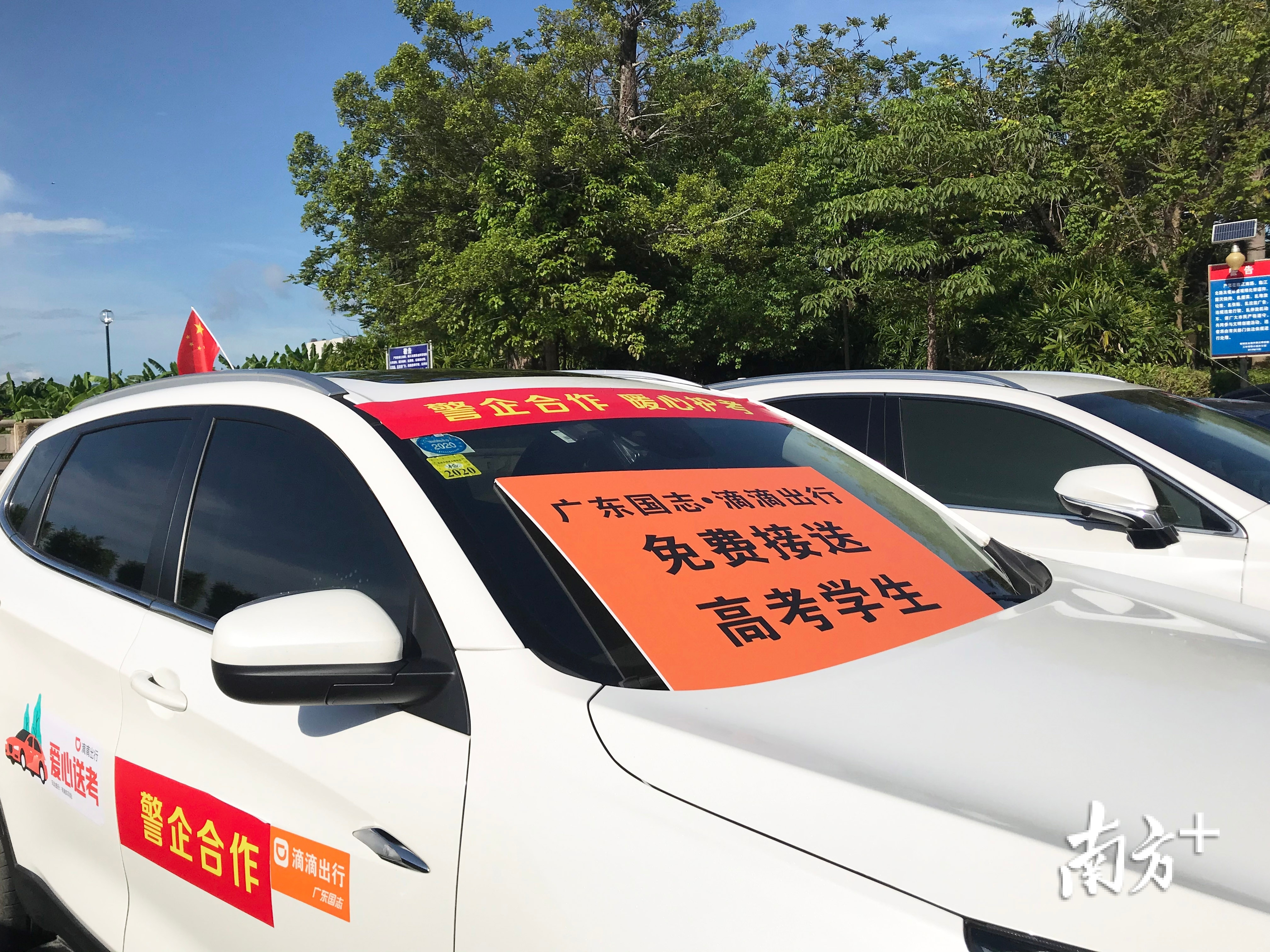 滴滴爱心车队除了接受有需要的考生预约免费接送服务外,还分成三队,分别在揭阳一中、华侨中学、普宁二中这三个主要考点外待命,为有需要的考生和家长提供免费服务。