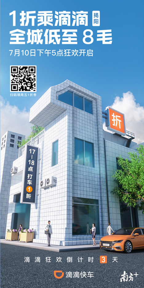 滴滴出行揭阳公司表示,为了助力考试季,给揭阳市民带来更好的出行体验,7月10日至31日,每个工作日17-18时下班高峰期间,使用滴滴出行首单可享1折,低至8毛钱。此外,打开滴滴APP或小程序,每天12时可参与限量抢周末1折打车券活动,优惠券使用不限时段。