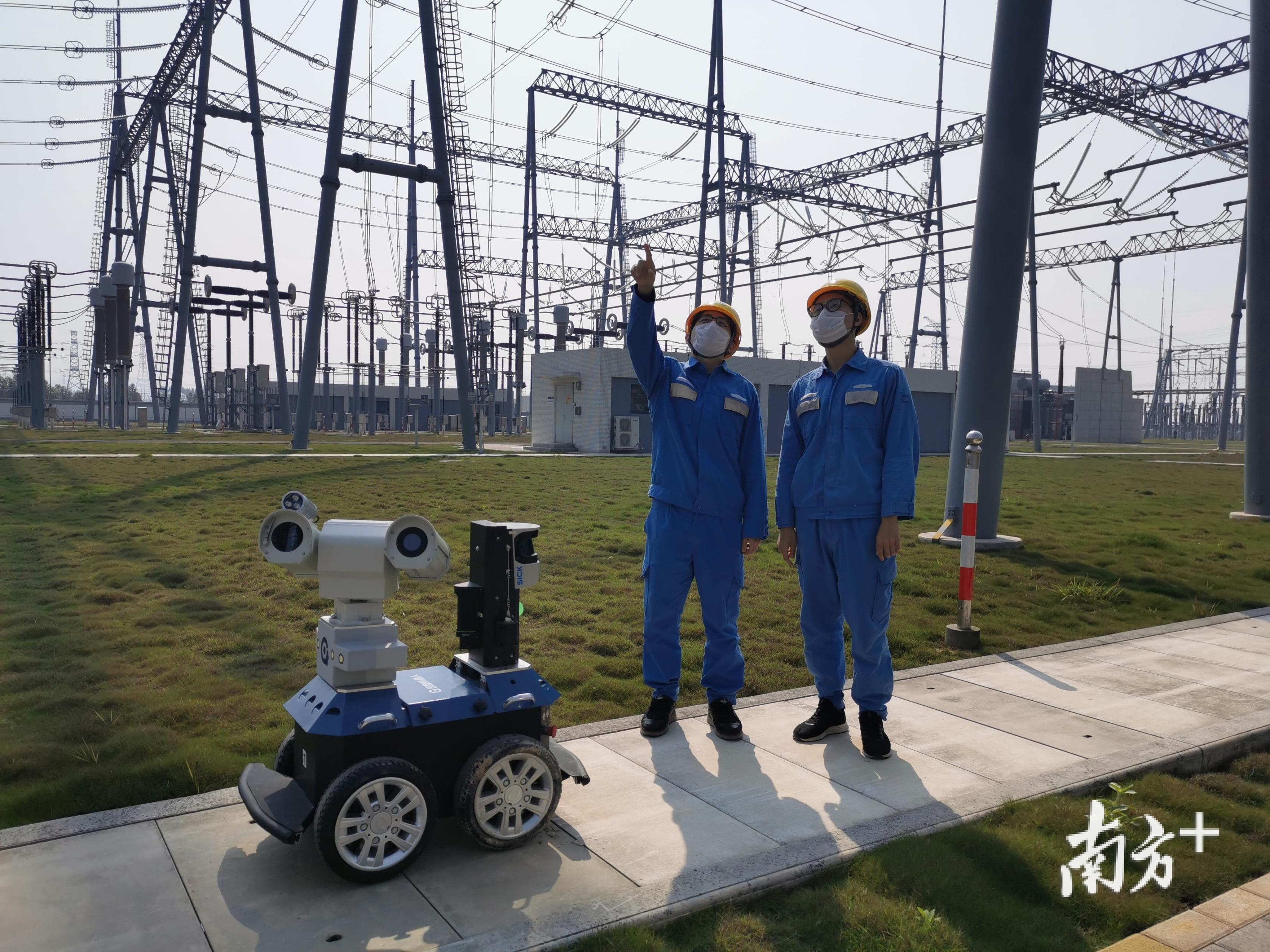 揭阳500千伏岐山变电站运维人员在站内进行安全巡视(方虹 摄)