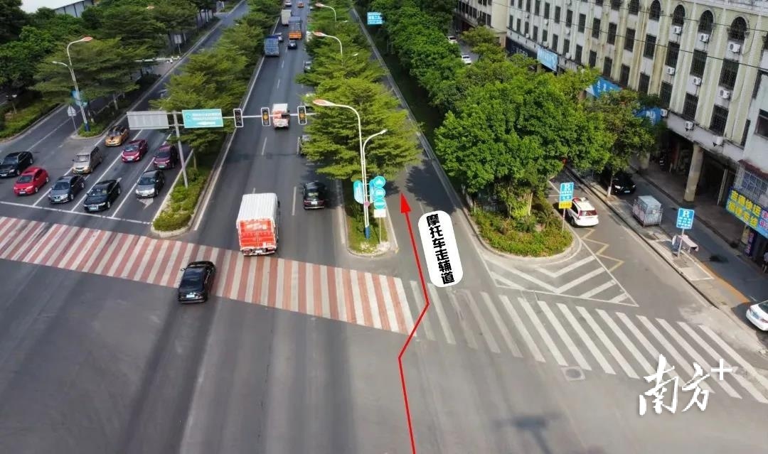 摩托车一律进入辅道行驶,与汽车分道而行,减少混行、争道冲突。