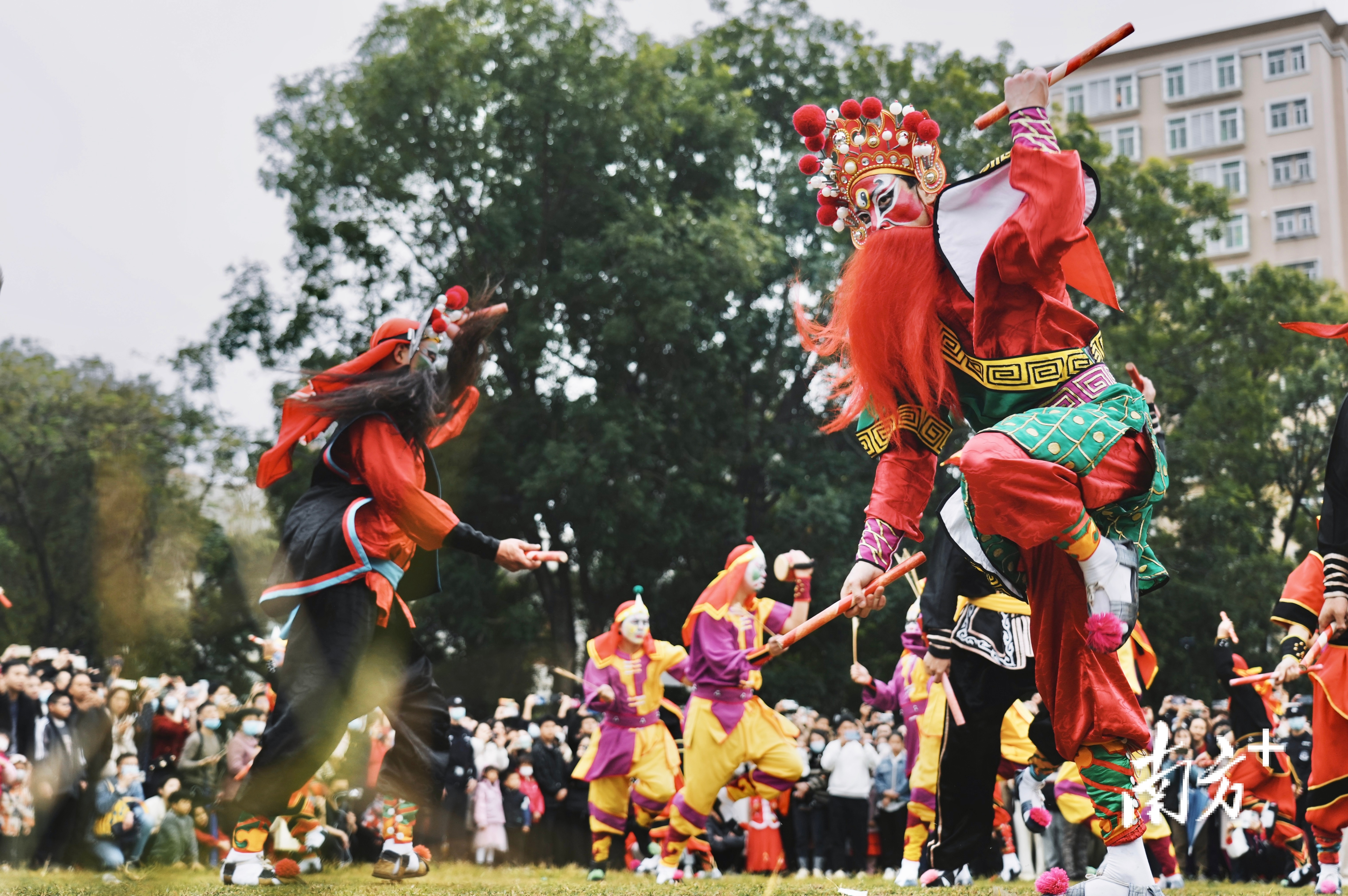 “北有安塞腰鼓,南有潮汕英歌。”英歌流传于潮汕练江与龙江流域,是一种融舞蹈、南拳套路、戏曲演技于一体的男子集体舞蹈,表演人数最多达108人。英歌至今已有300多年的历史,是国家级非遗。今年农历年初一起,普宁英歌、惠来英歌在揭阳各地盛装起舞,普宁南山英歌大巡游在网络“火出圈”。