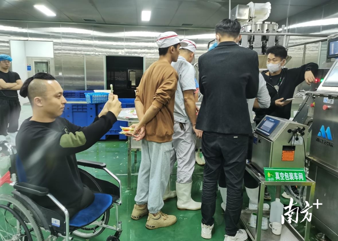 去年夏天,公司周围大片新鲜竹笋开始收成,林滨提出直播带货的建议。于是,他组建了公司第一个直播间,每天,他摇着轮椅到竹林和厂区拍摄竹笋生长、生产的过程,亲手挖出新鲜竹笋并进行解说,给公司产品带来新的销量。