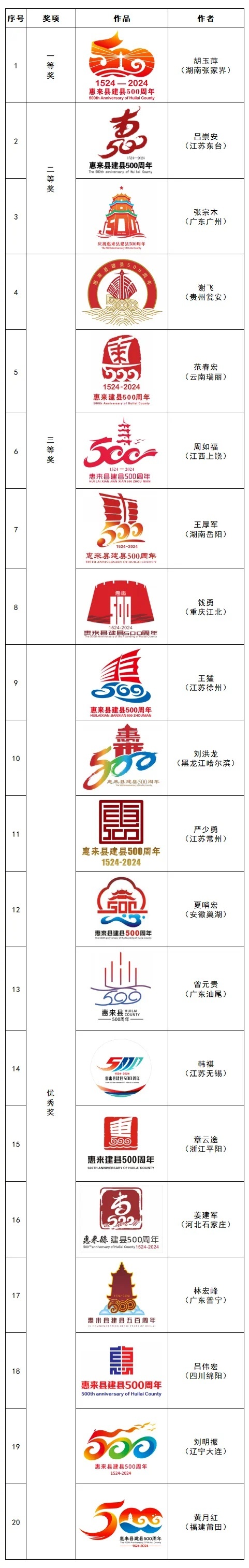 为喜迎惠来建县500周年,2022年12月12日, 惠来县向全社会广泛征集惠来建县500周年形象标识(Logo)。