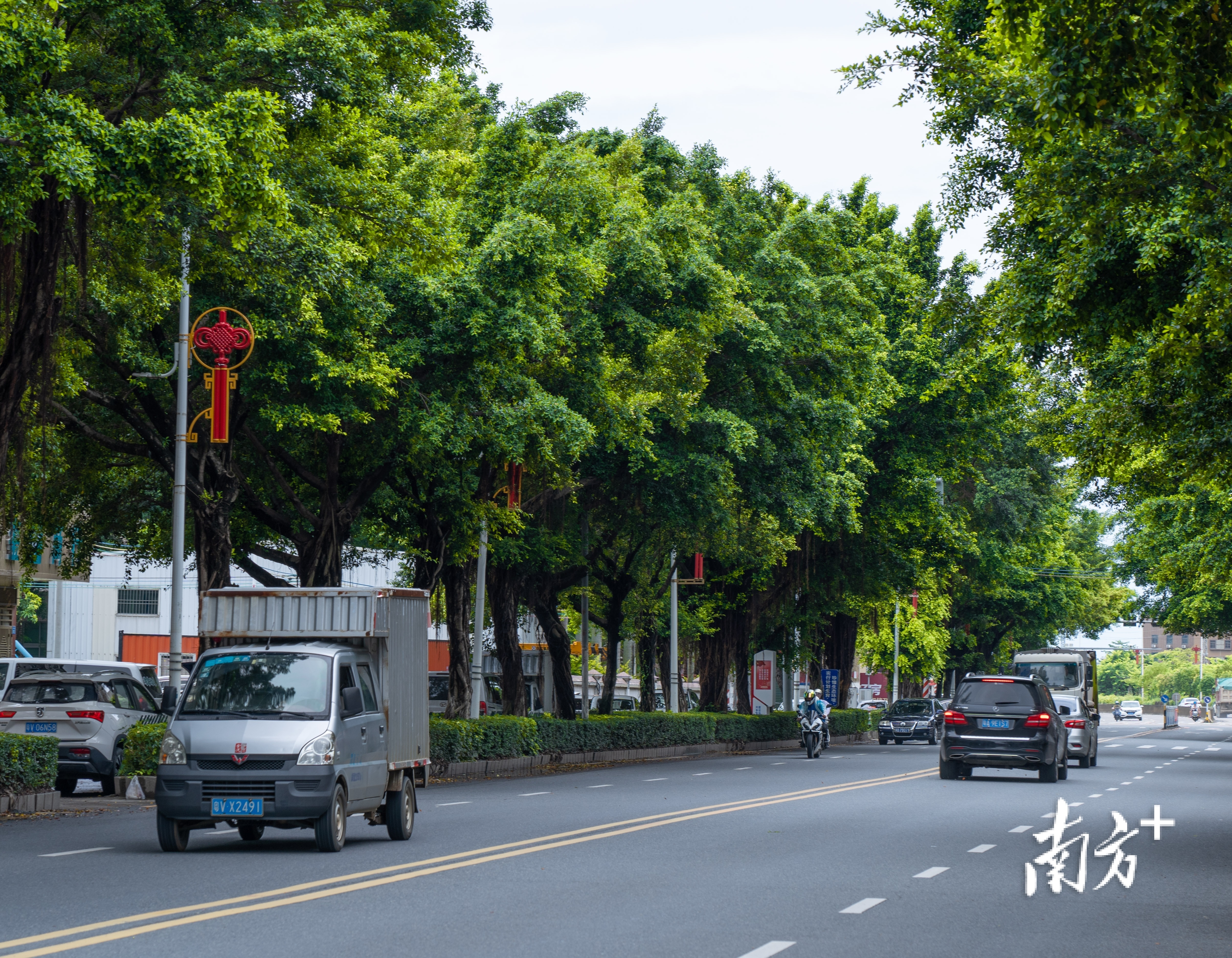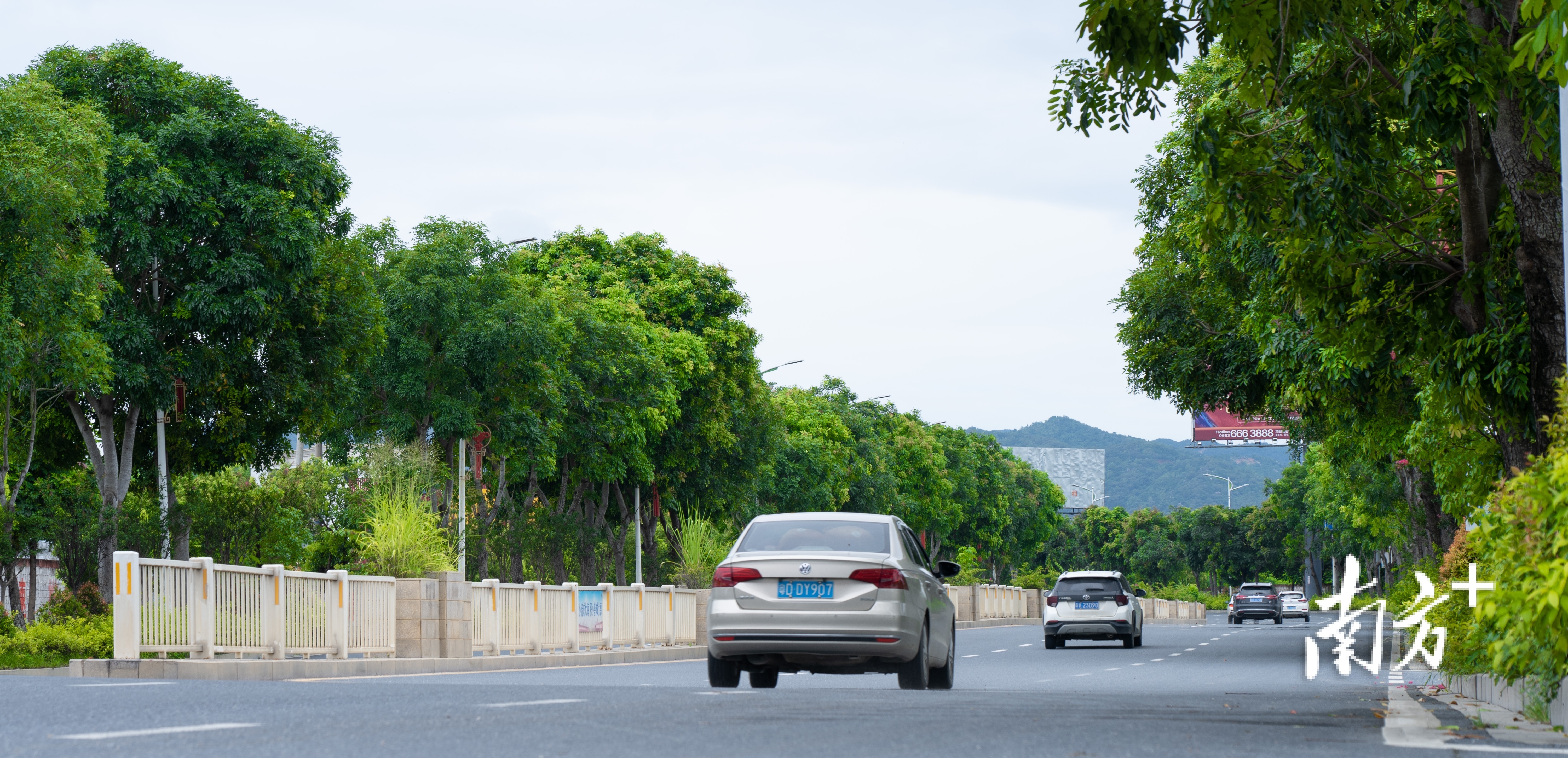 车辆行驶在惠城区绿树成荫的道路上。