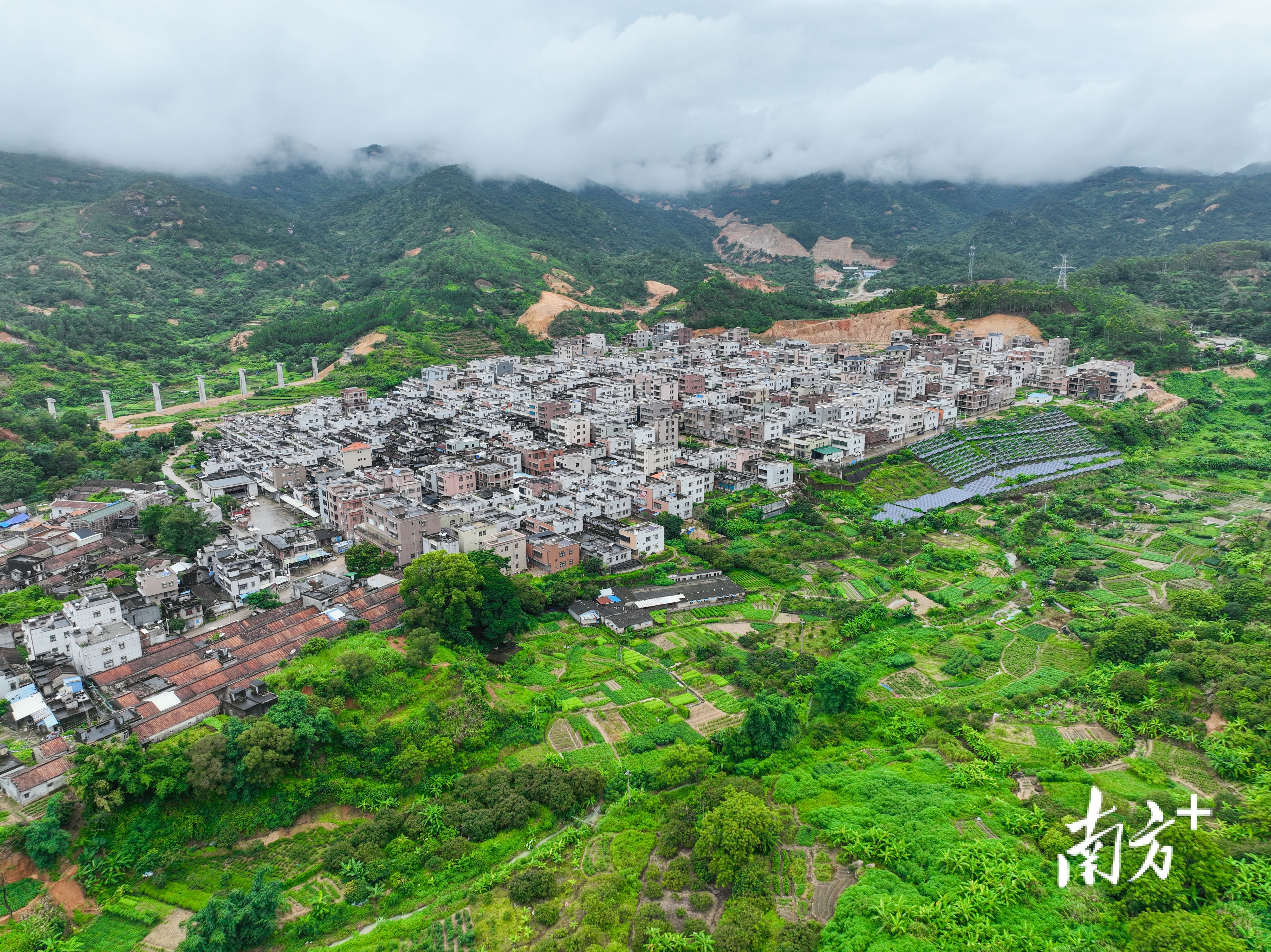 村庄与山峦构成风景画。