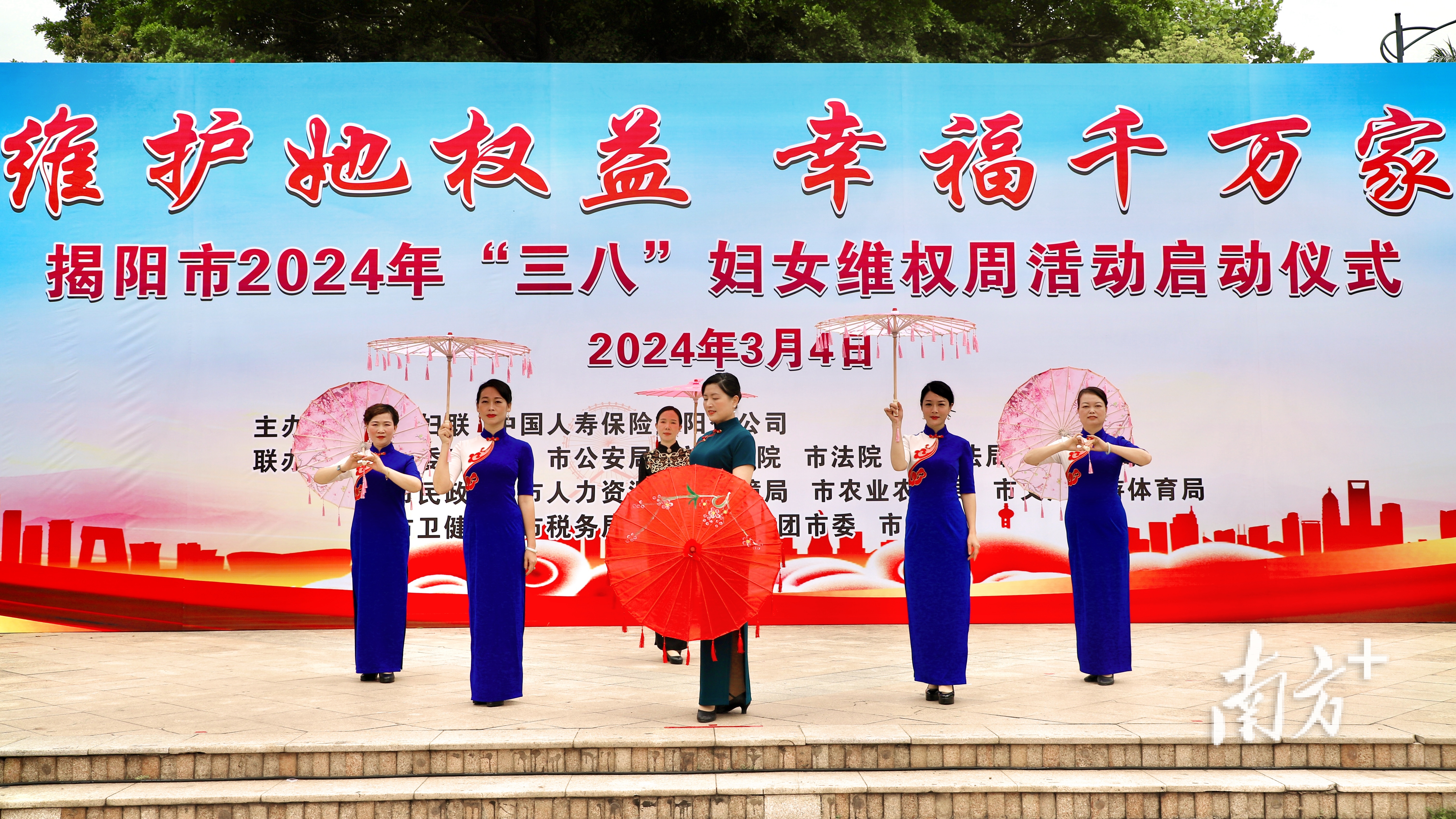 启动仪式现场进行了精彩的文艺表演。经典潮剧《秦香莲》唱段“天大祸事我担承”演唱后,中国妇女十三大代表林秀梅律师,为大家现场剖析解读其中涉及的法律元素,让广大市民在享受潮剧经典曲目的同时接受法治熏陶。《秋水伊人》和《水韵江南》旗袍秀表演如诗如画,展现了东方女性的独特魅力和神韵,引导广大妇女追求美好生活。