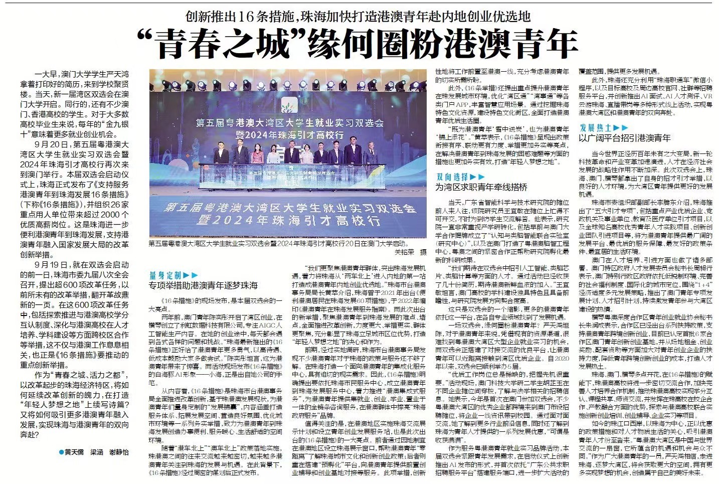 发展新质生产力,关键靠“人”,特别是用好人才这个“第一资源”。当前,珠海正处于一系列国家重大战略叠加的黄金发展期,对人才的渴求不言而喻。这座年轻的经济特区,比以往任何时候都更尊重、爱惜人才。