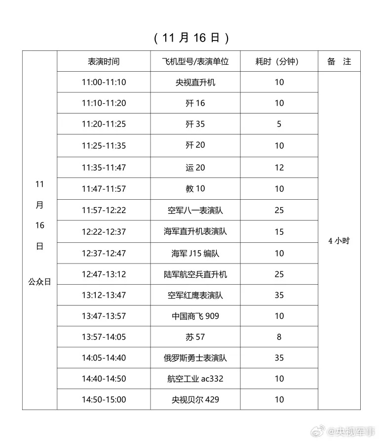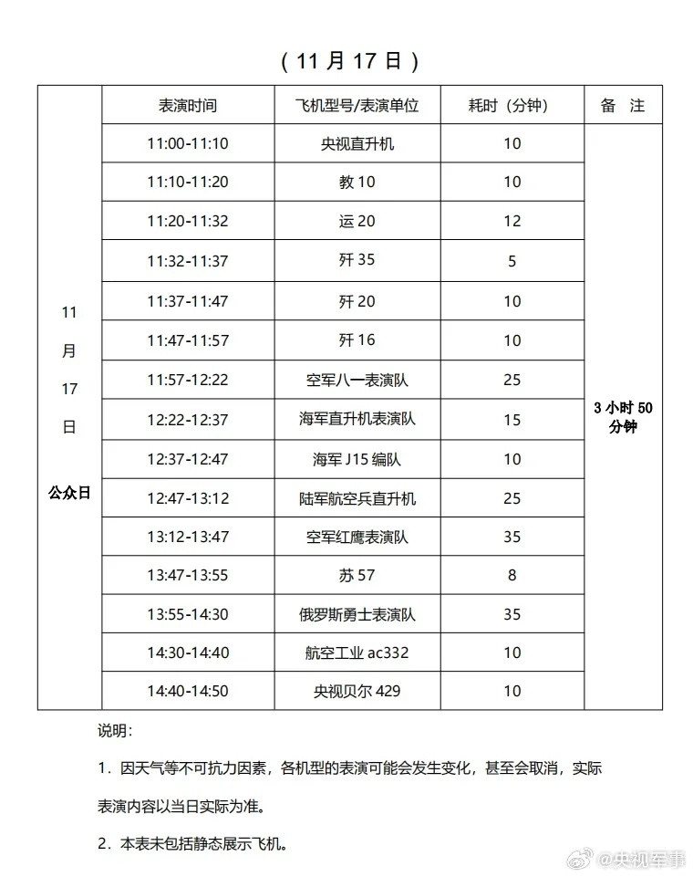 【航展表演时刻表】