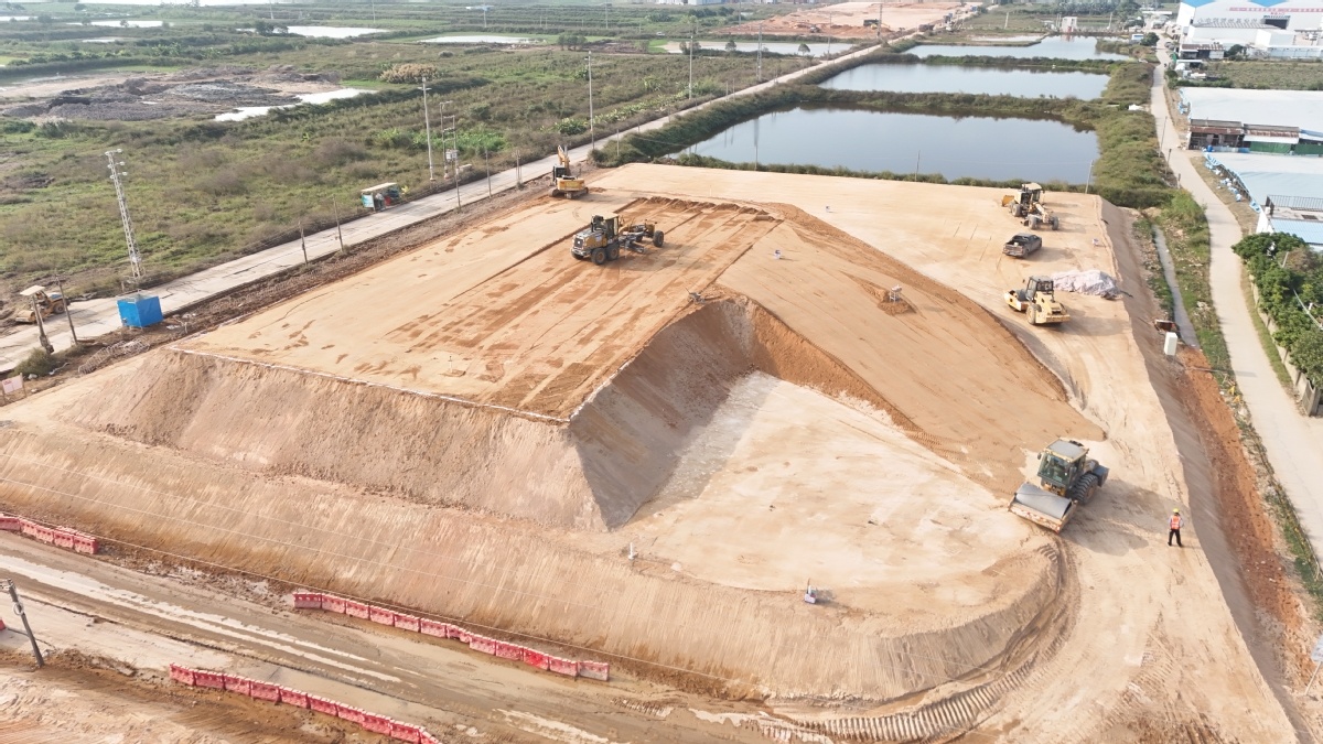沈威表示,截至目前,鹤洲站动车所地基处理项目的鱼塘处理、施工垫层填筑、高压旋喷桩、塑料排水板、密封墙施工已完成100%,真空预压抽真空已完成设计86%,路基填筑施工按下“快进键”,日填筑量达到2.71万方。