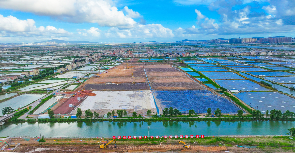 位于珠海市斗门区境内的鹤洲站动车所整个区域为孤岛状,四周环水,全部范围分布在深厚软土地层,具有“超宽路基、深厚软土、复杂场坪、特殊环境”四大特点。