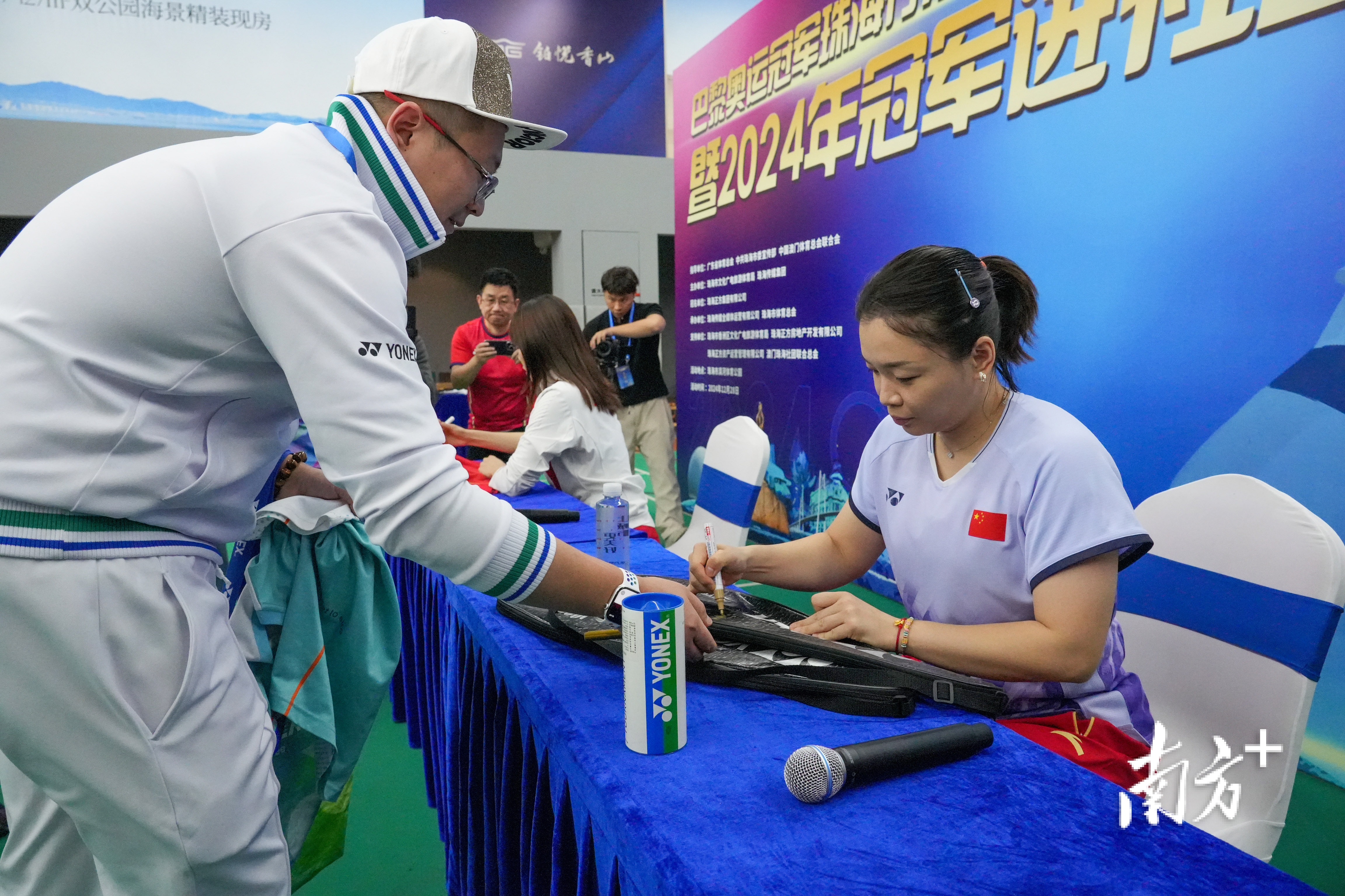 “我拿到奥运冠军的签名了!”市民邹先生激动道。12月28日,巴黎奥运冠军珠海行系列活动之一“冠军进社区”活动开展。当天,巴黎奥运会羽毛球女双冠军陈清晨、贾一凡来到正方滨河体育公园,与市民朋友精彩互动。