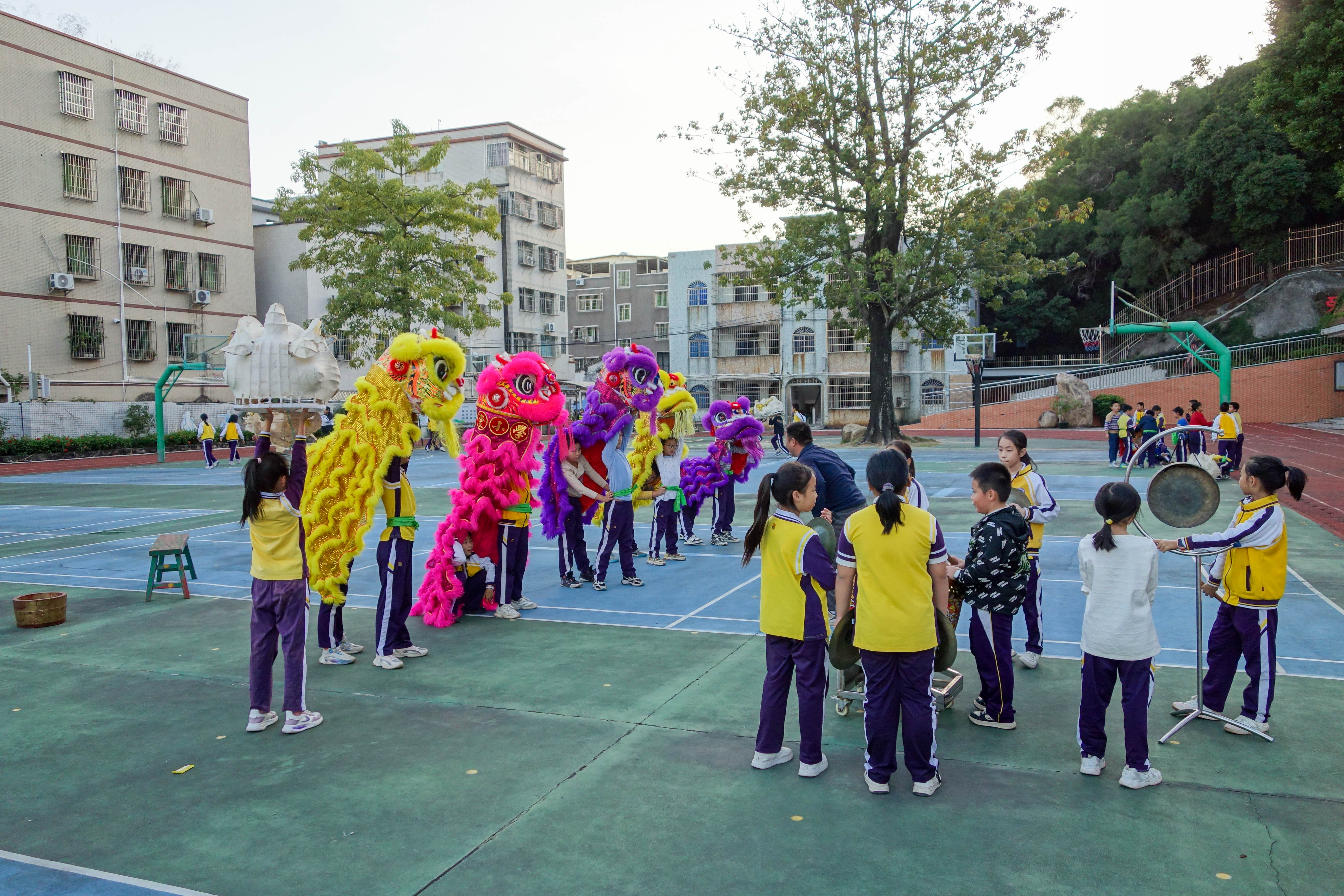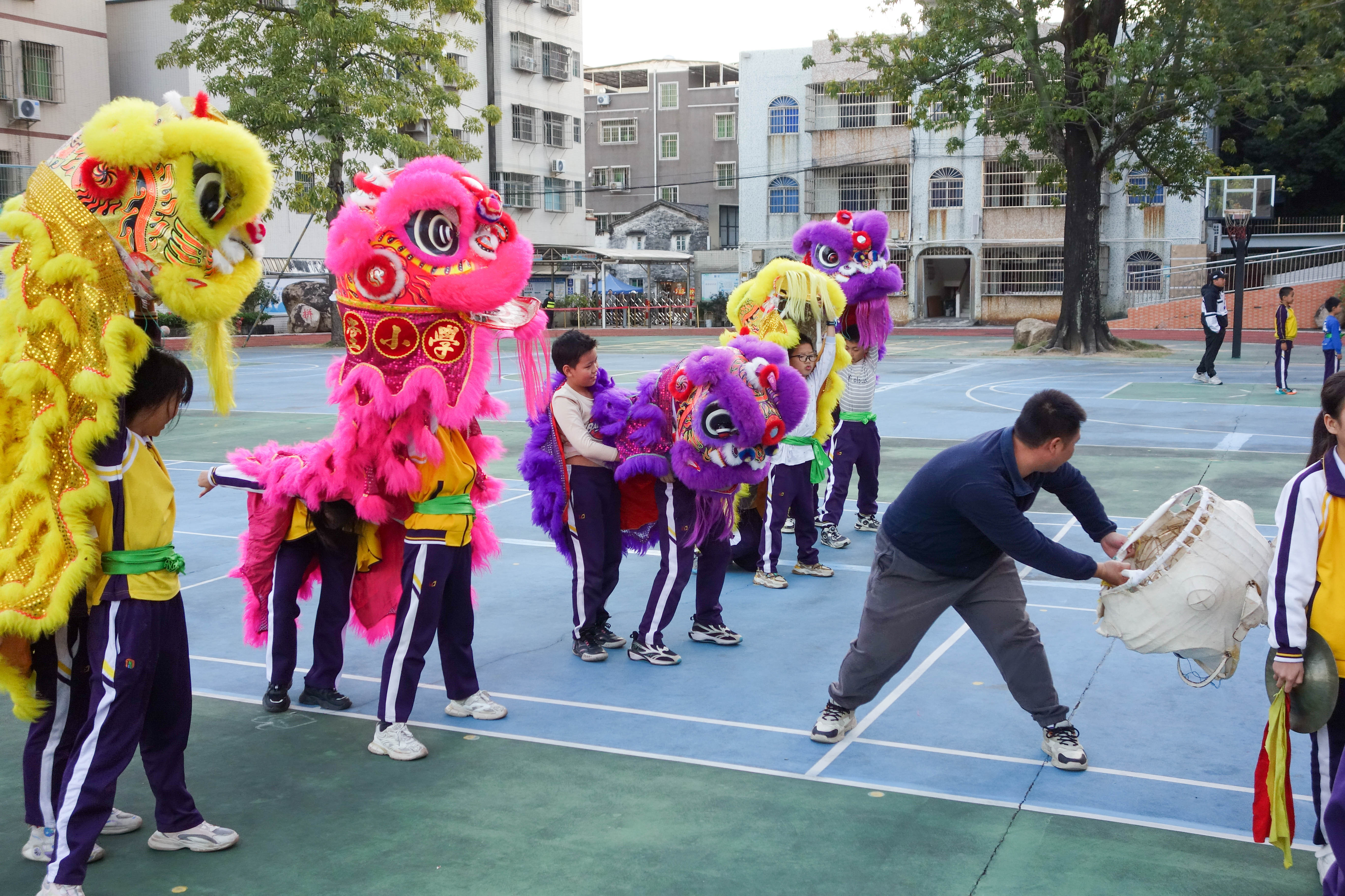 新堂小学的操场上,鼓点如雷,震耳欲聋。伴随着激昂的鼓乐,几只小狮子腾空而起,瞬间吸引了所有人的目光。