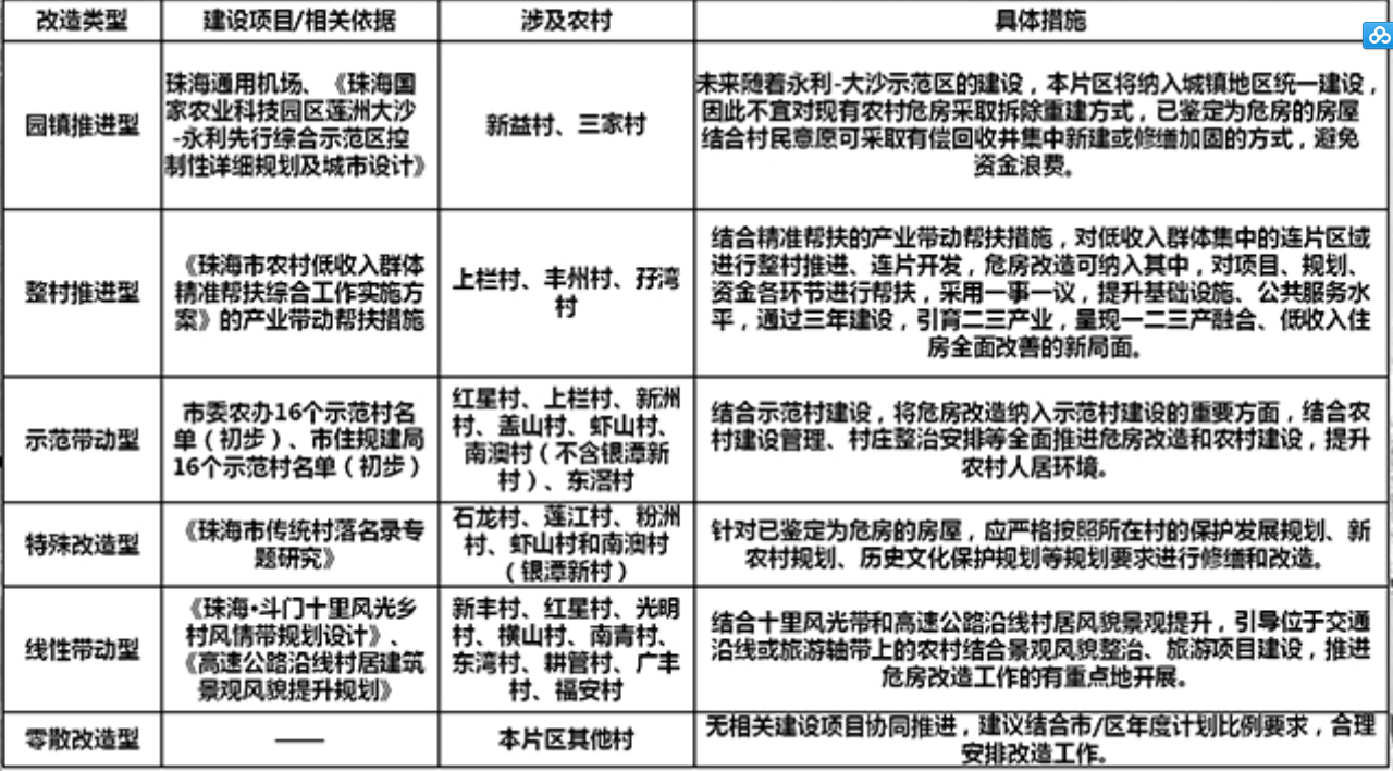 此次规划将遵循政府主导、村民自愿原则,至2020年实现低收入群体的唯一且自住危房改造工作100%完成。在改造方式上,珠海将依托全市整村改造、示范村建设等工作计划,联动危房改造工程,探索对危房集中区域采取统一连片的改造方式,并采取集约用地的理念,优先利用闲置宅基地、村内空闲用地和拆旧宅腾出的宅基地进行农村危房改造建设。